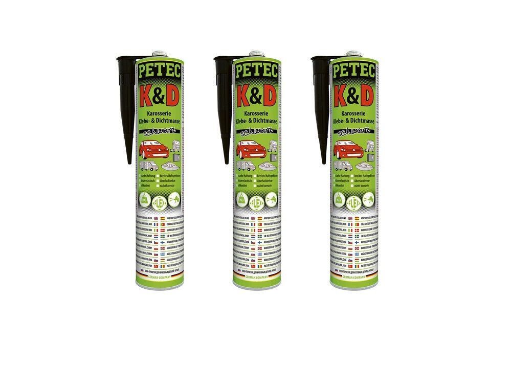 PETEC 3 Kartuschen PETEC K&D Karosserie Klebe- & Dichtmasse, schwarz, 310ml