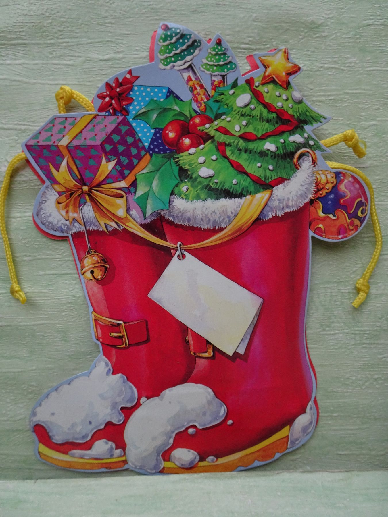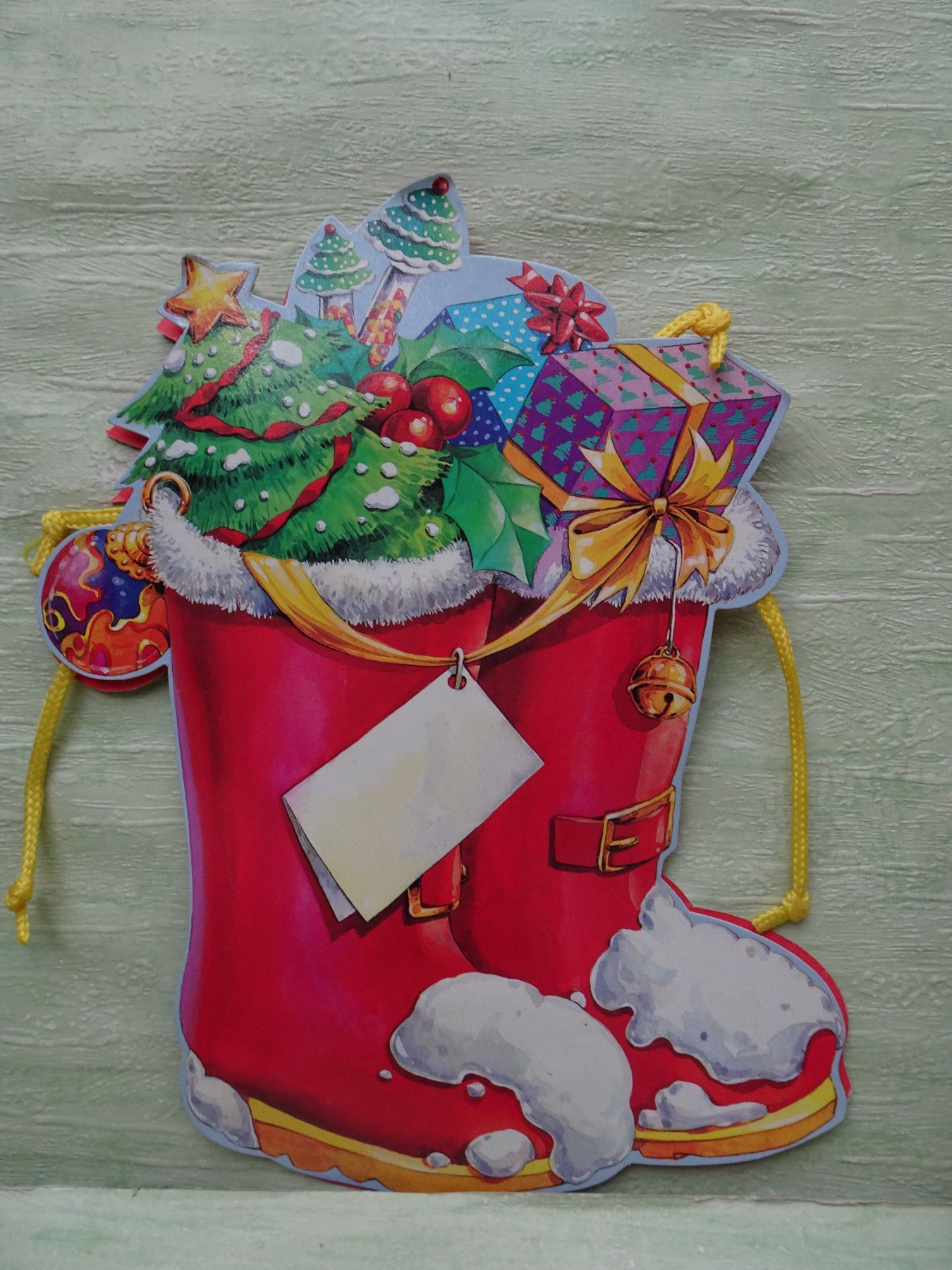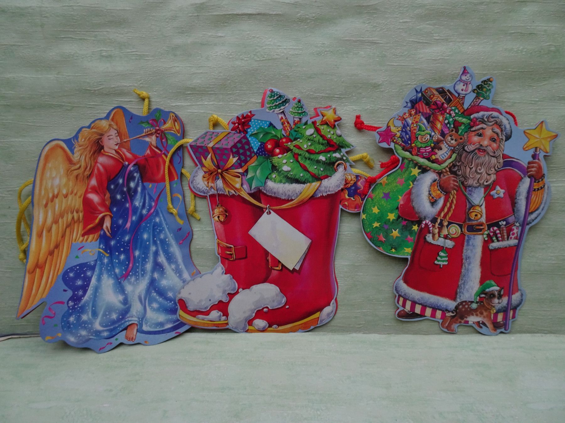 3 Konturen- Geschenktüten Engel Weihnachtsmann Stiefel ca 30x21cm Innentasche