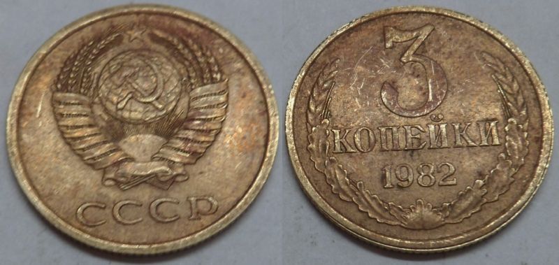 3 Kopeken 1982, UdSSR, Russland B Es handelt sich um eine 3 Kopeken Münze aus der ehemaliger UdSSR. 3 Kopeken (Al-Bro) 1982. Stadtwappen mit je 7 Schleifen, Landesbezeichnung. Rs. Wertangabe und Jahreszahl. Erhaltung -SS++. Abbildung ist nur ein Beispiel des Artikels, um den Aufwand für gleiche Münz