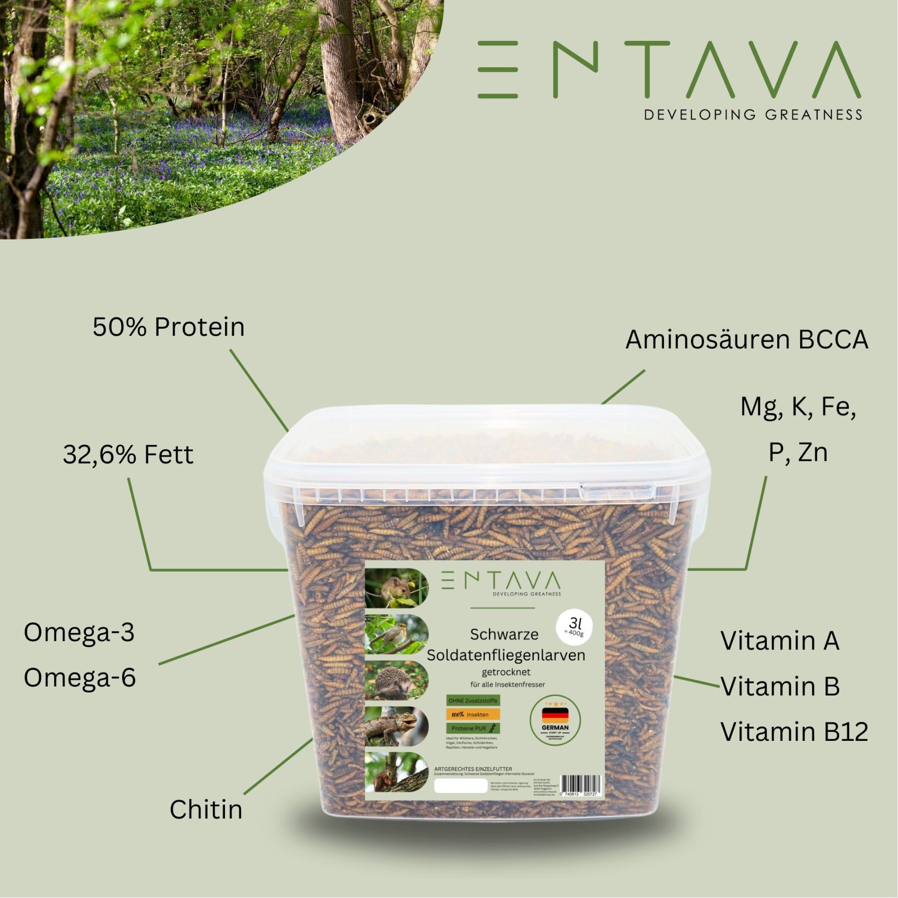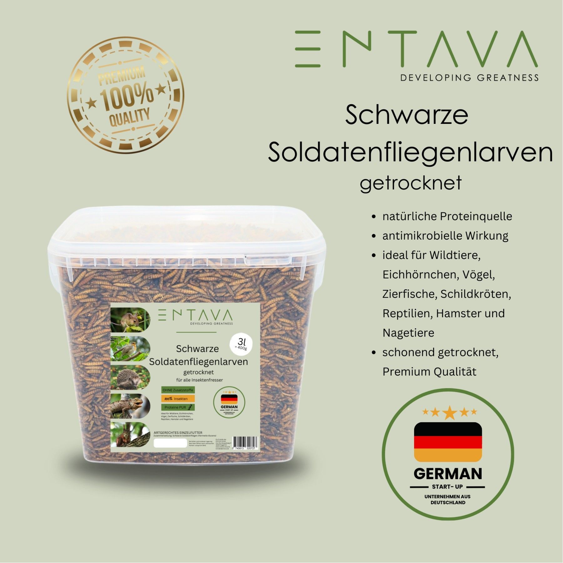 3 l getrocknete Soldatenfliegenlarven Vogelfutter Koifutter Maus Vogel Fisch Reptil