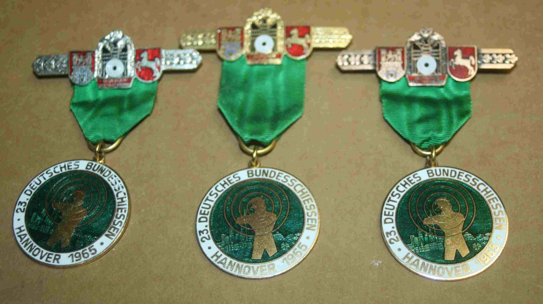gebrauchter Zustand, alle an Tragenadel, Gold, Silber, Bronze- Ausführung, keine Emailschäden... Mehr