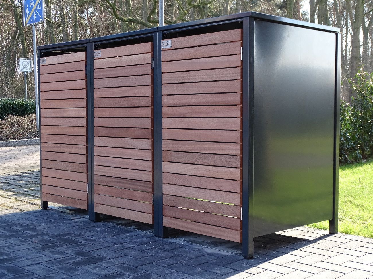3 Mülltonnenboxen für 240 Liter-Mülltonnen in Edeldesign Anthrazit / Edelholz