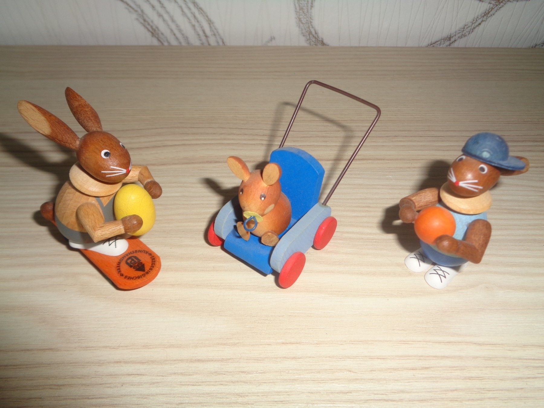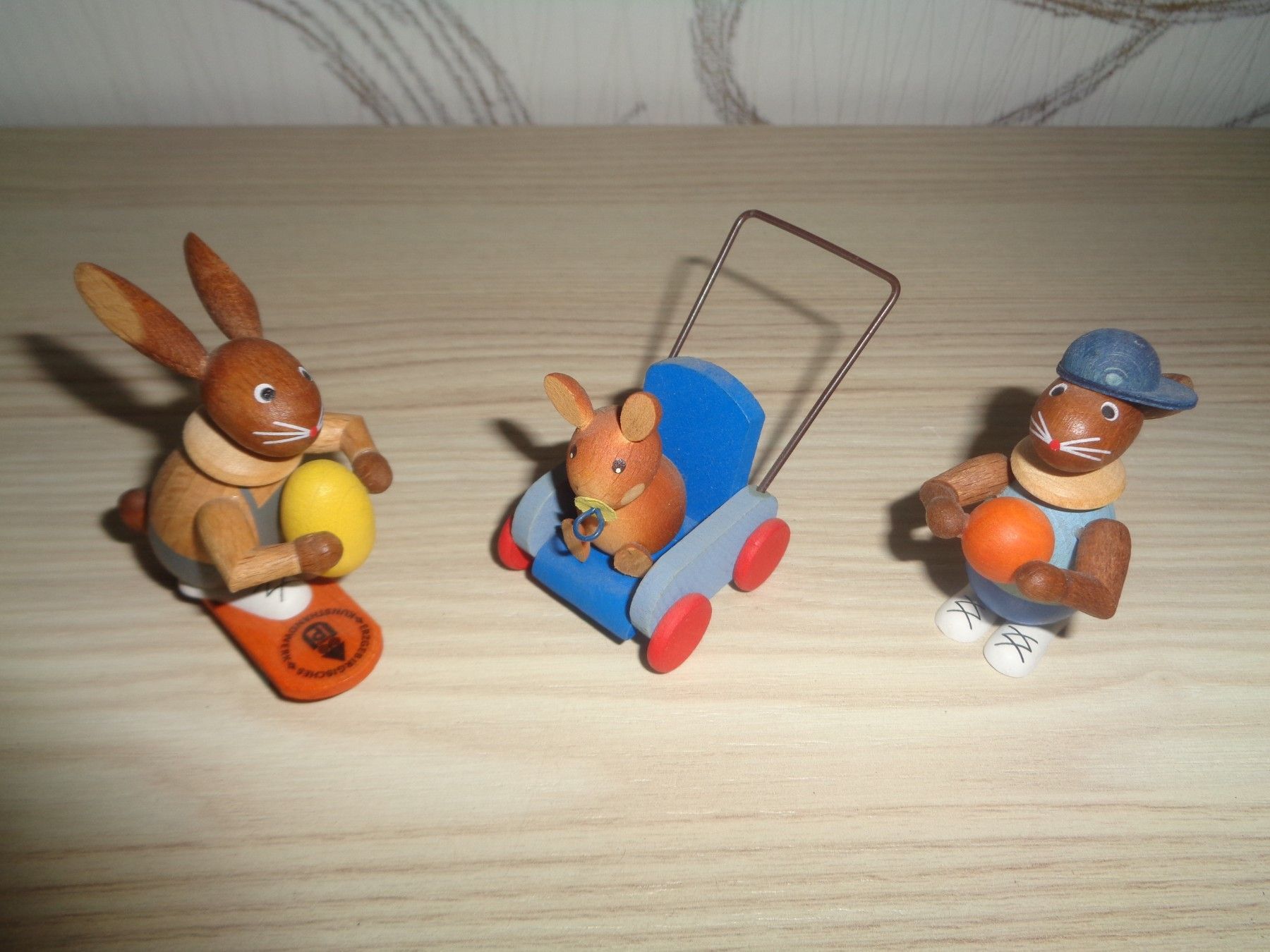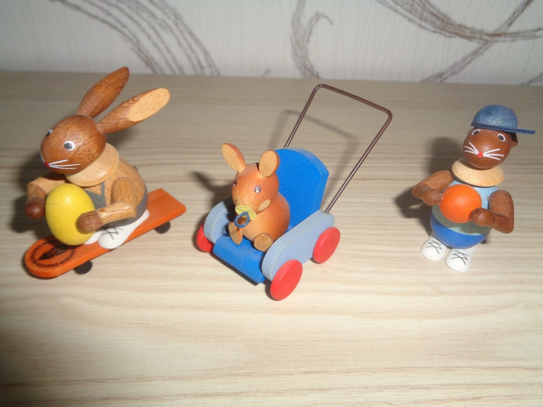3 Osterhasen -Original Erzgebirge-sehr selten -Wagen, Skatebord