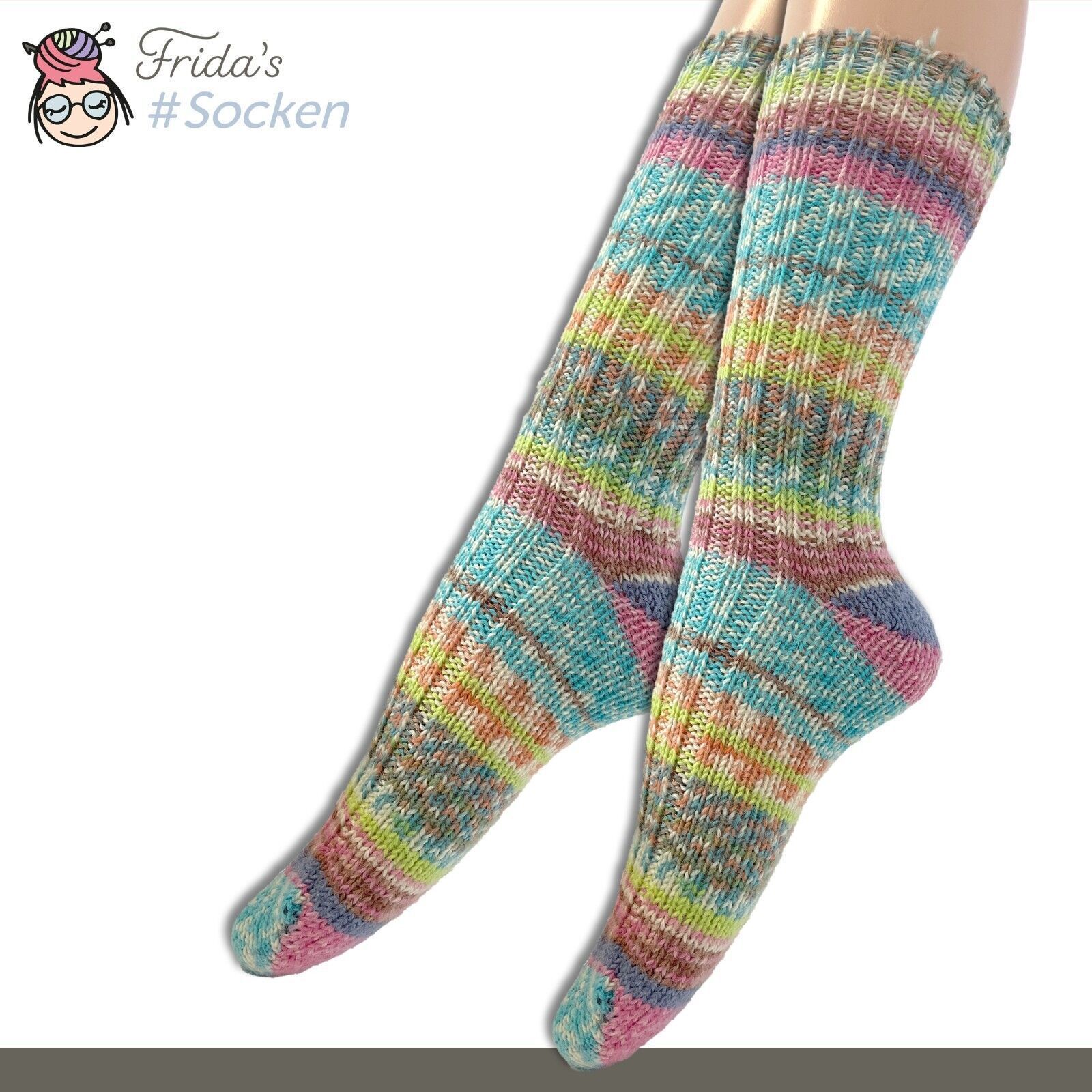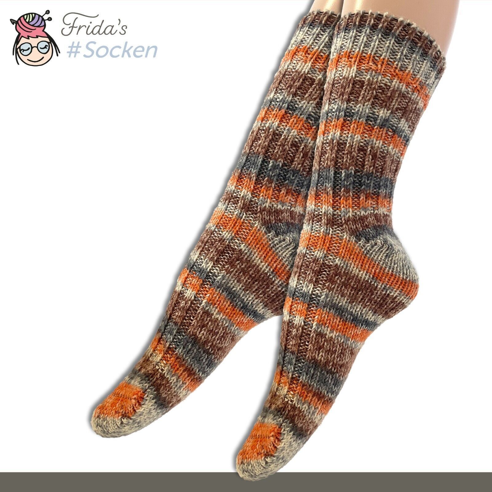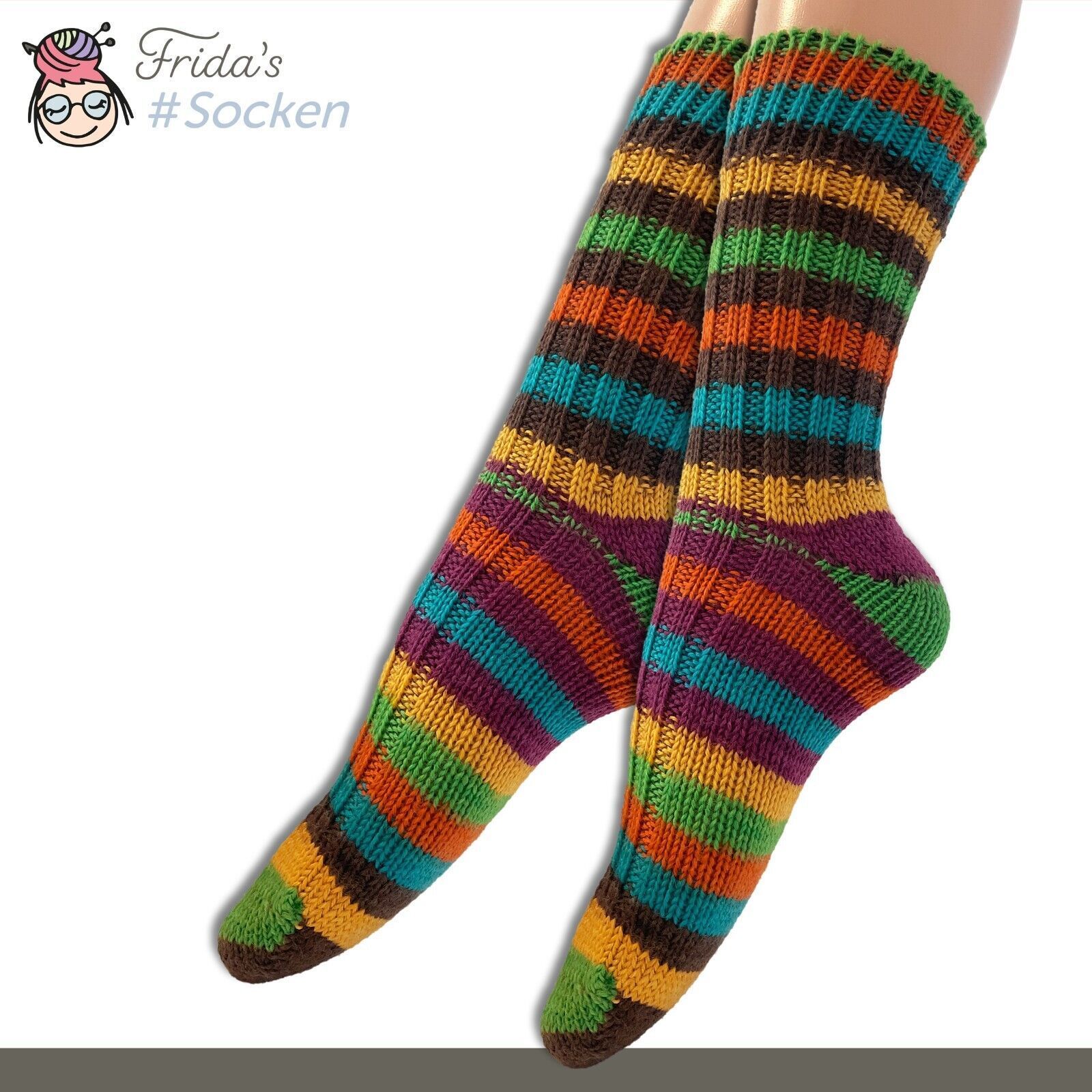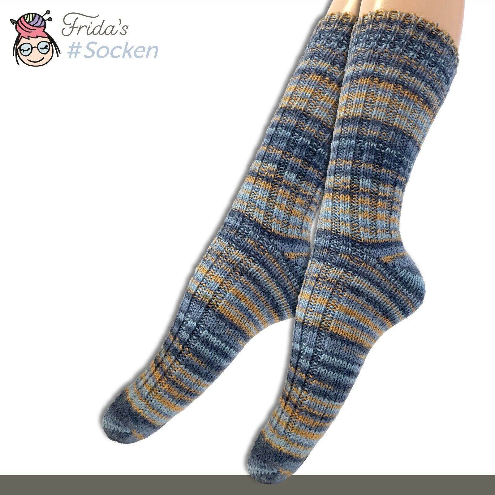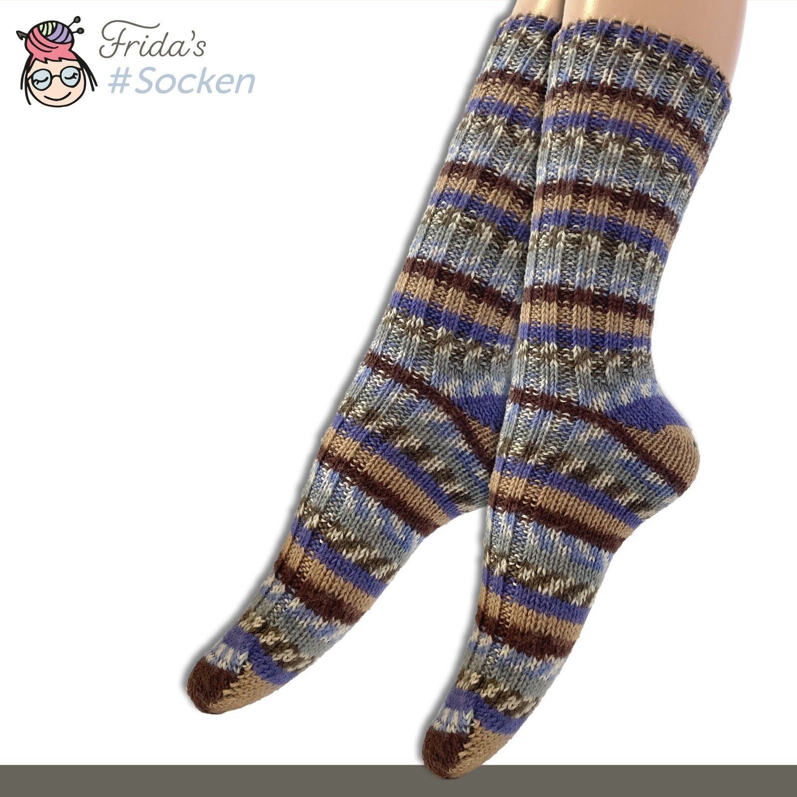 3 Paar Frida's Socken gestrickte Wollsocken aus Merino-Polyamid-Mischung für Damen und Herren in den Größen 35-40 und 40-45 Produktbeschreibung • Material : 75% Schurwolle (Merino) superwash 25% Polyamid • Herstellung : Maschinengestrickt • Fadenanzahl : 4-fädig • Eigenschaften :