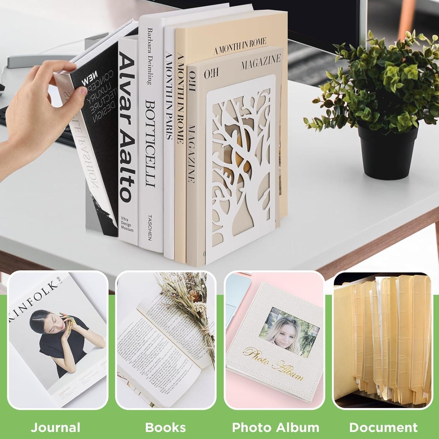 3 Paar Metall Buchstütze Book Holder Bücherhalter Weiß 17,2x12x9,3 cm