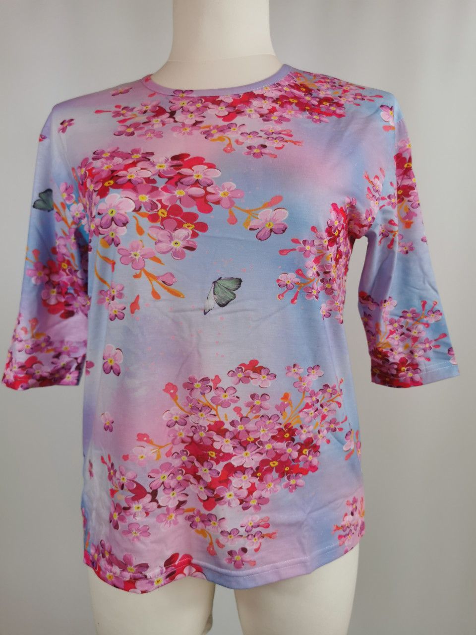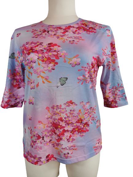 3 Pagen Druckshirt mit Blumenmuster, blau / rosé, Gr. L