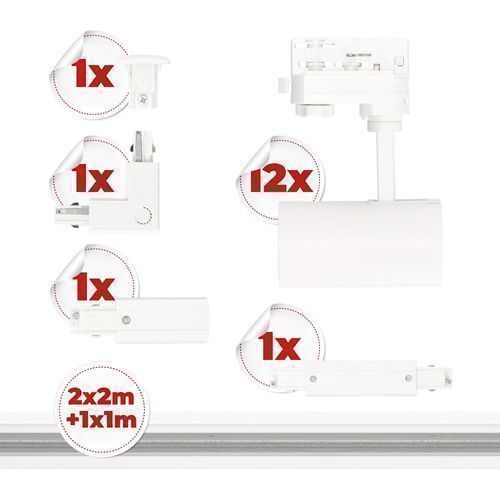 3-Phasen-Schienen-Set Nextrack - Schienensystem Komplett-Set mit 12x GU10 Lampe Weiß