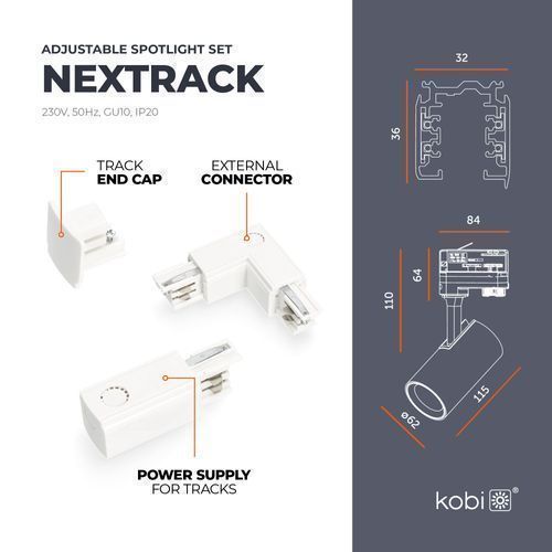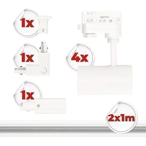 3-Phasen-Schienen-Set Nextrack - Schienensystem Komplett-Set mit 4x GU10 Lampe Weiß