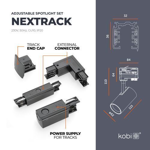 3-Phasen-Schienen-Set Nextrack-schienensystem Komplett-Set Schwarz
