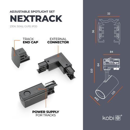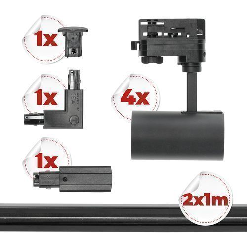 3-Phasen-Schienen-Set Nextrack-schienensystem Komplett-Set Schwarz