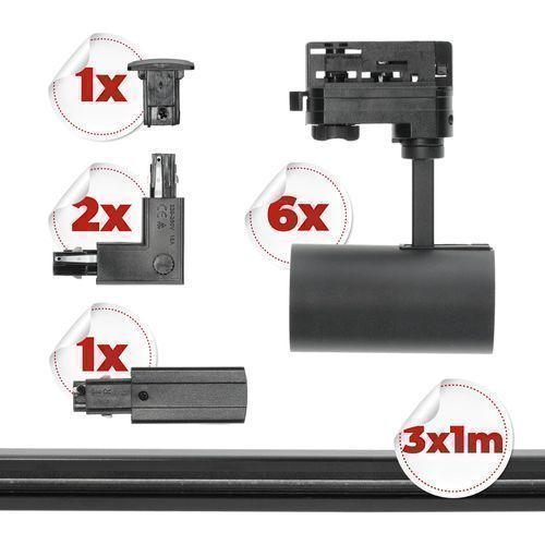 3-Phasen-Schienen-Set Nextrack-schienensystem Komplett-Set Schwarz