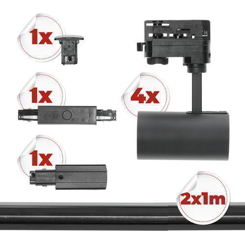 3-Phasen-Schienenset Nextrack - Schienensystem Komplett-Set mit 4x GU10 Lampe Schwarz