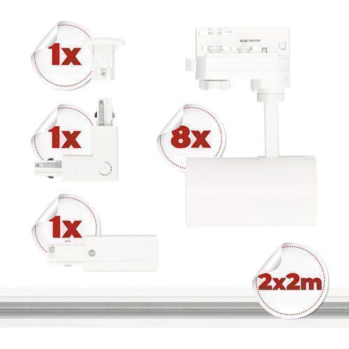 3-Phasen-Schienenset Nextrack - Schienensystem Komplett-Set mit 8x GU10 Lampe Weiß