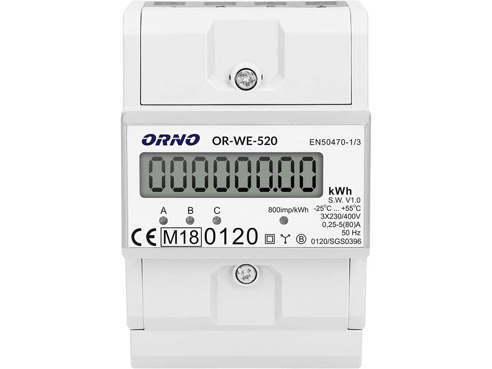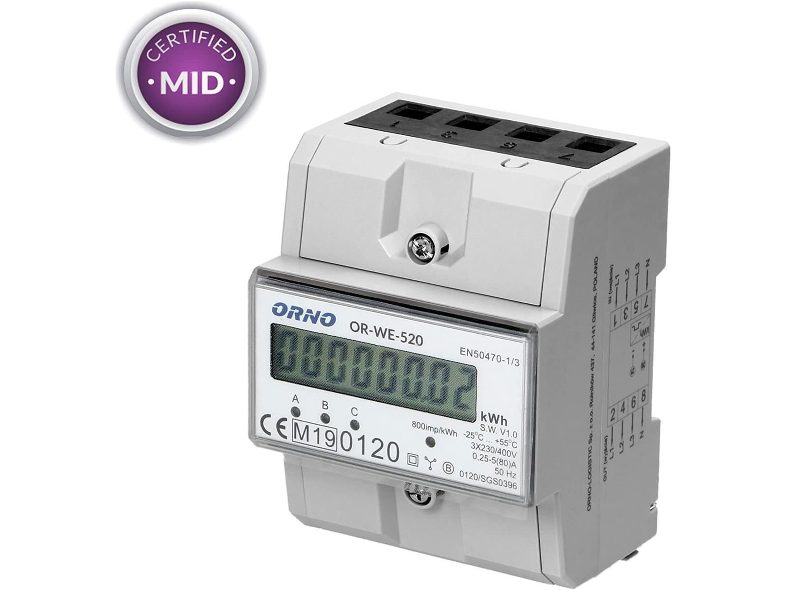 3-phasiger Stromzähler, 80A, MID, 3 Module, DIN TH-35mm