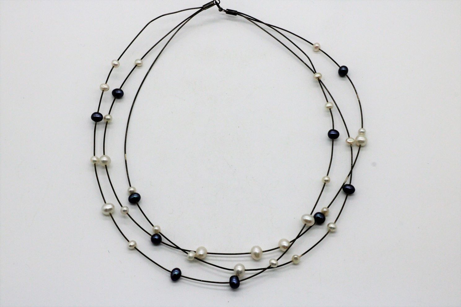 3-reihige Süßwasserperlenhalskette aus silbernem Draht