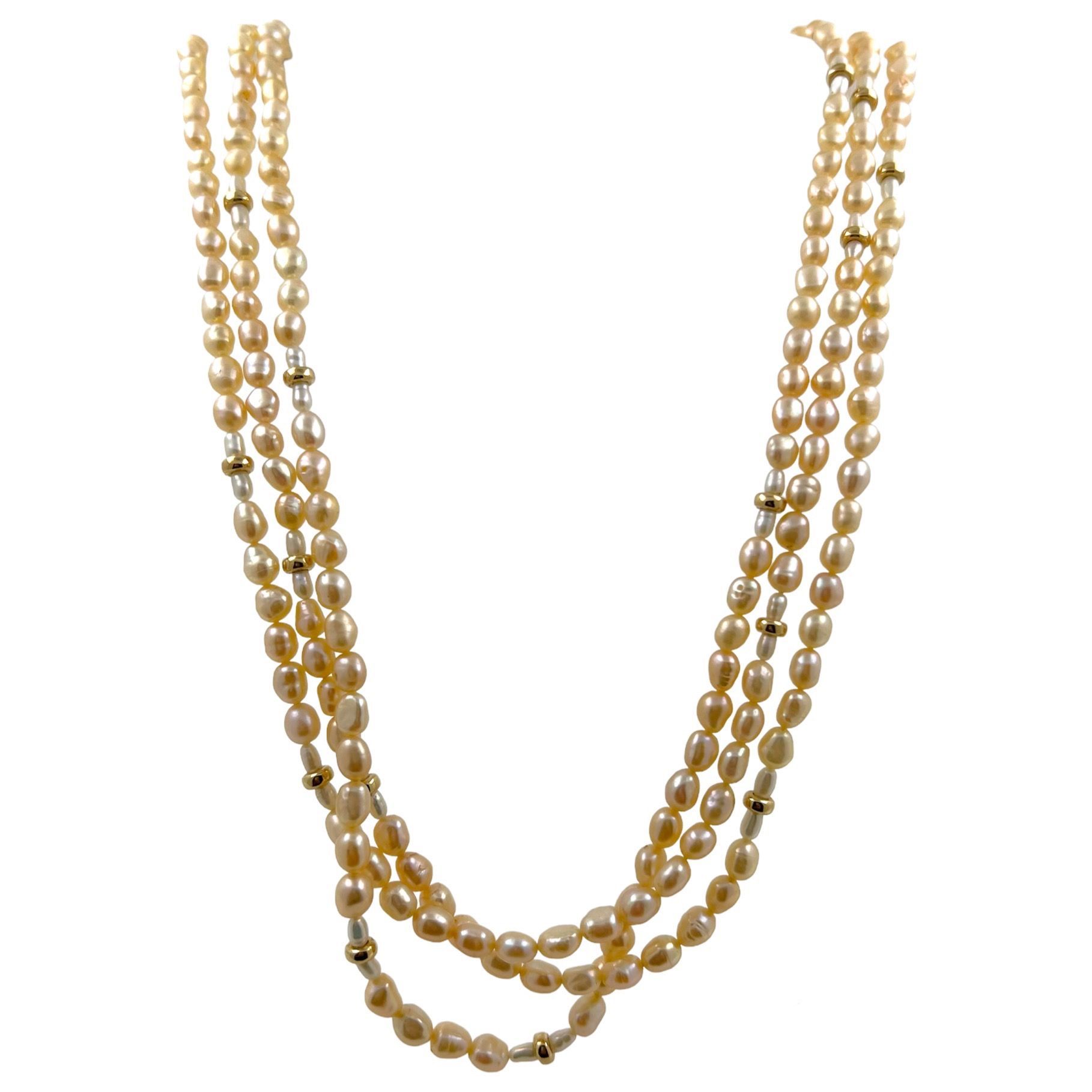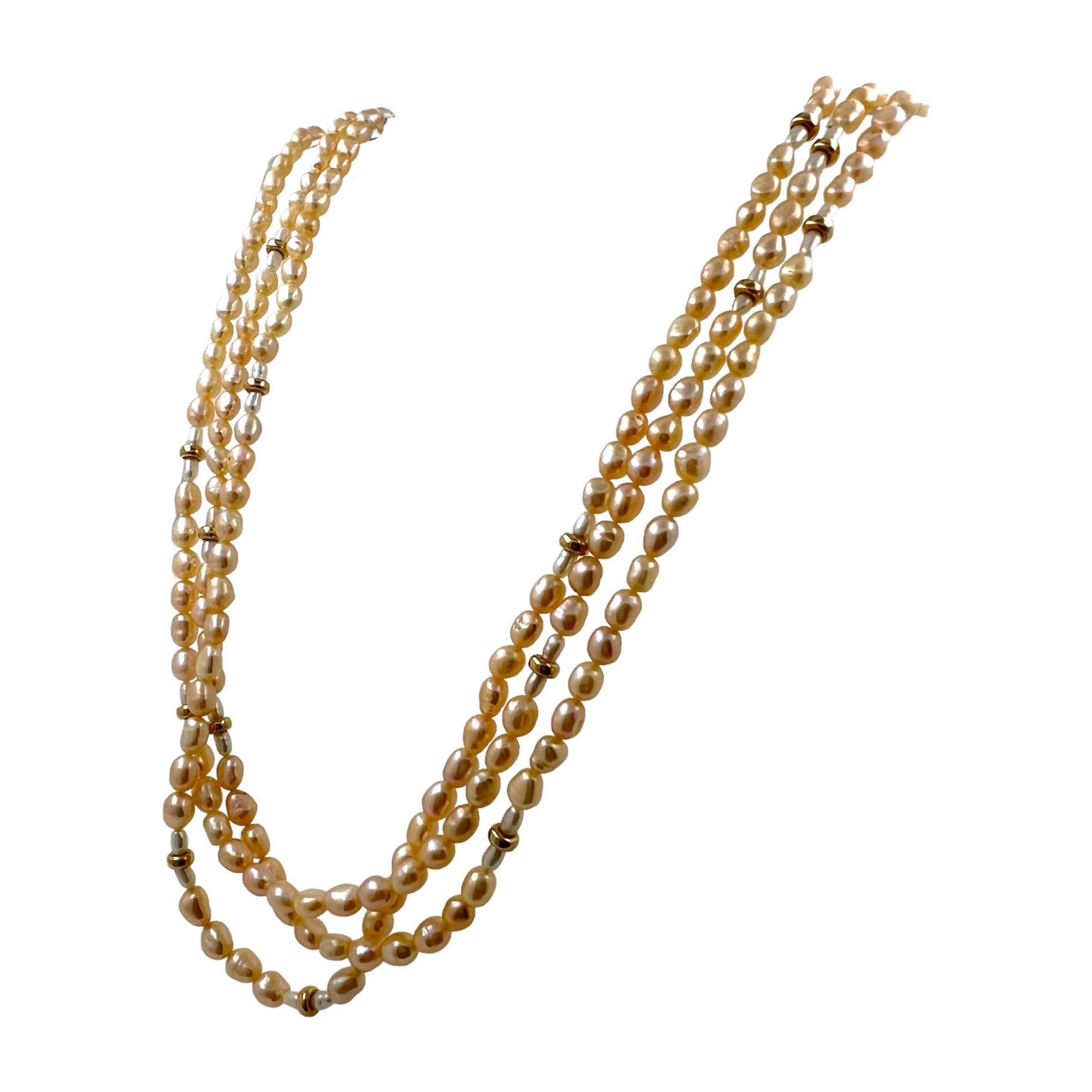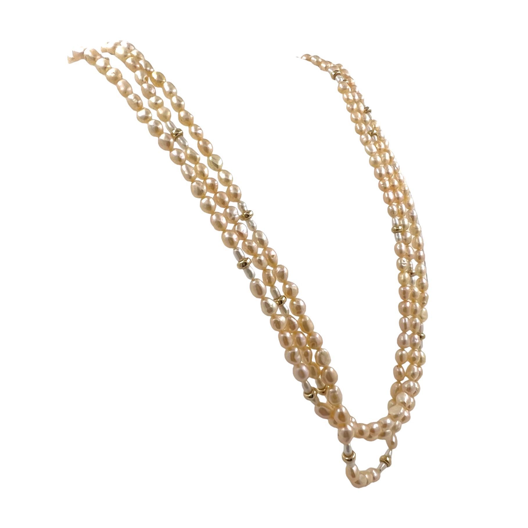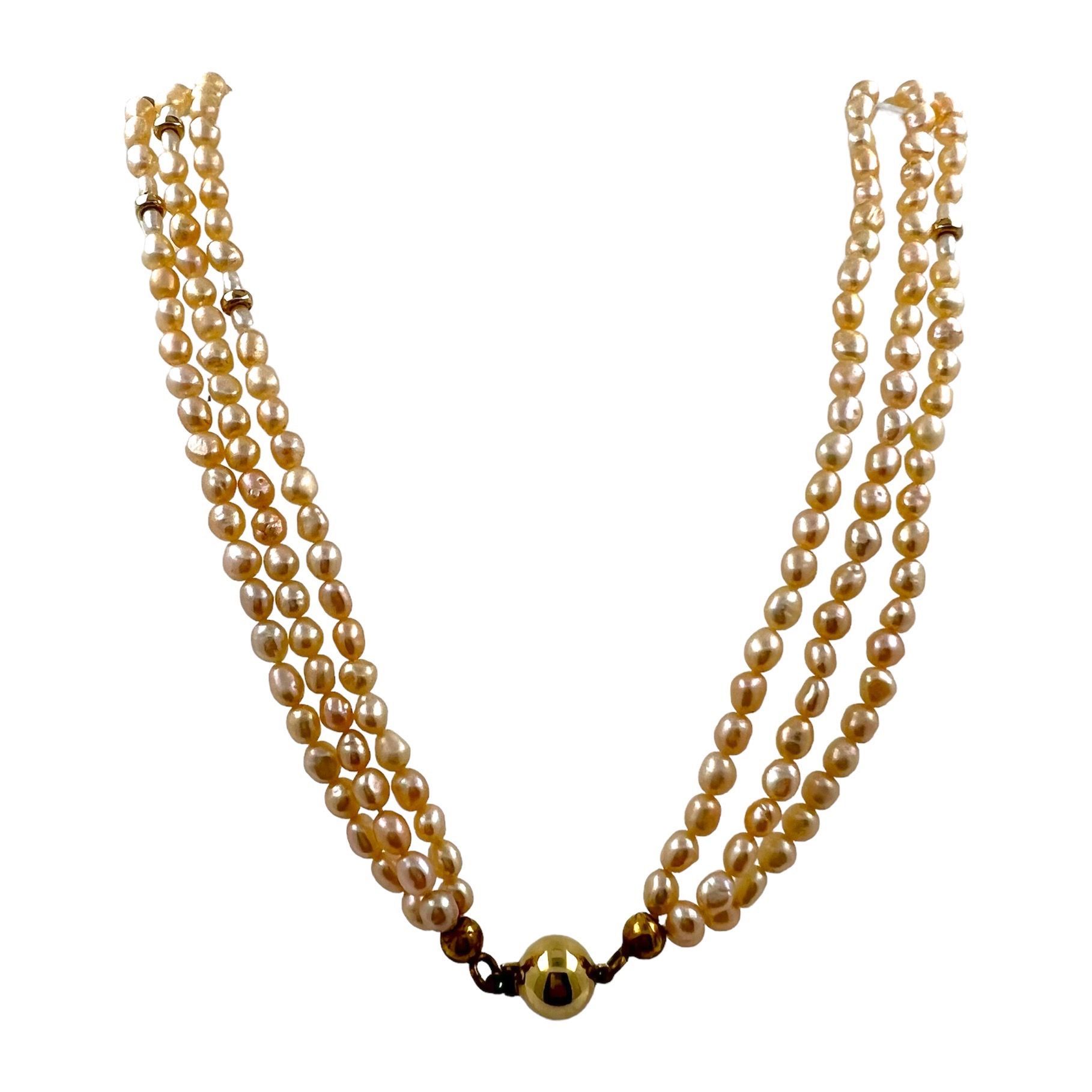 3 Rheige Biwaperlen Collier mit 14 kt Gold Teilchen