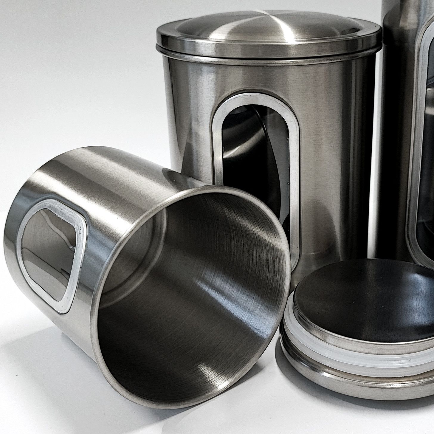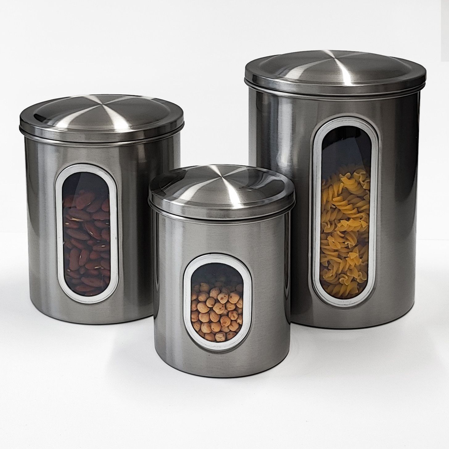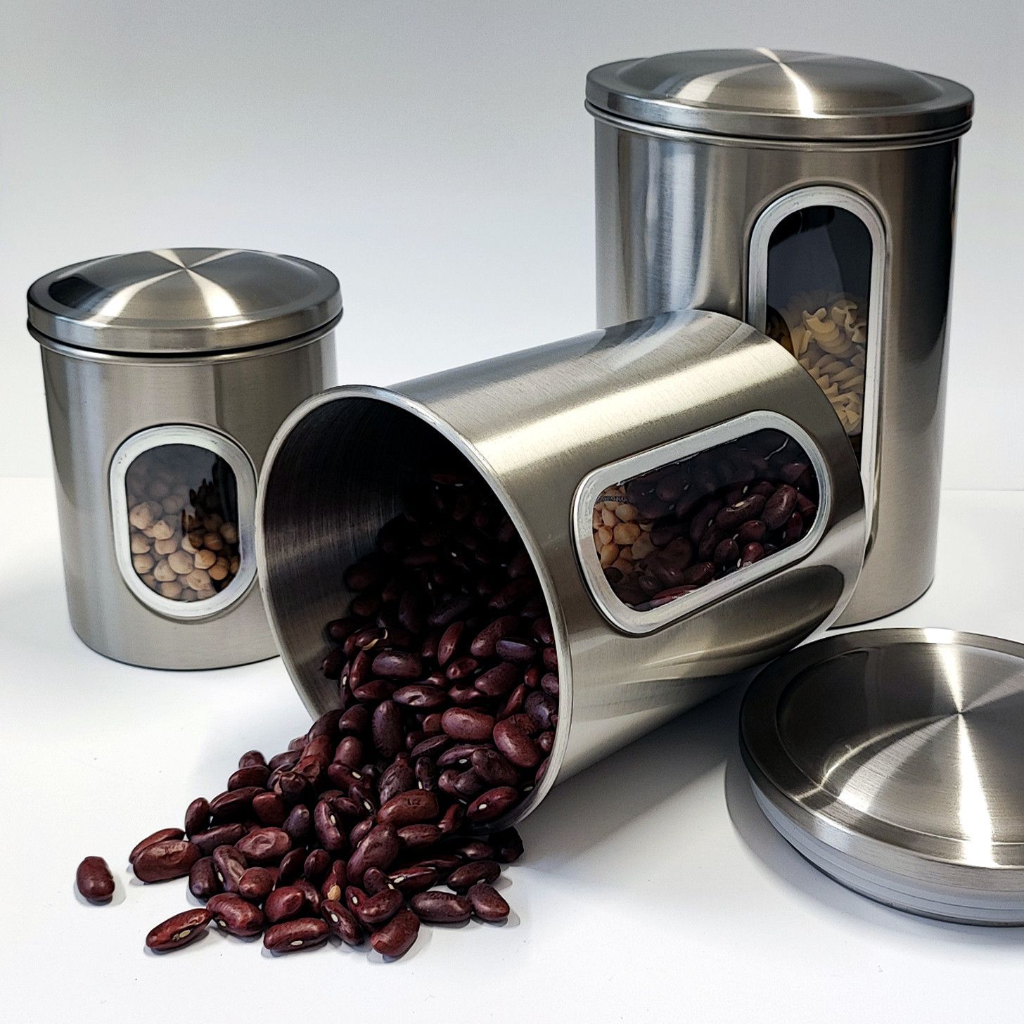 3 Set Edelstahl Vorratsdosen insg. 5,4L Küchenkanister mit Sichtfenster DeckeL