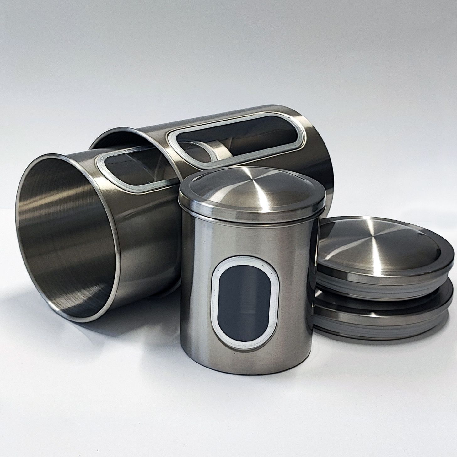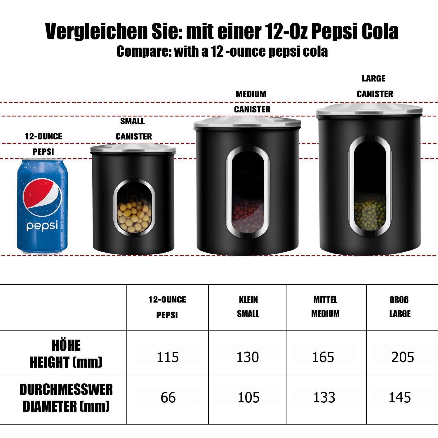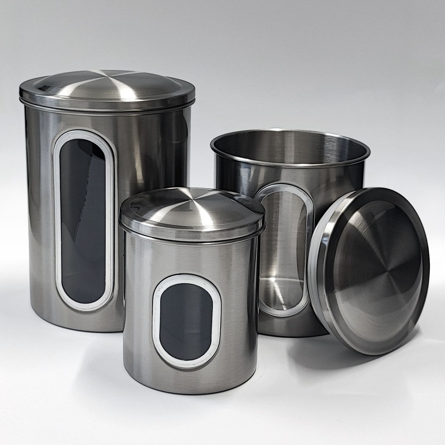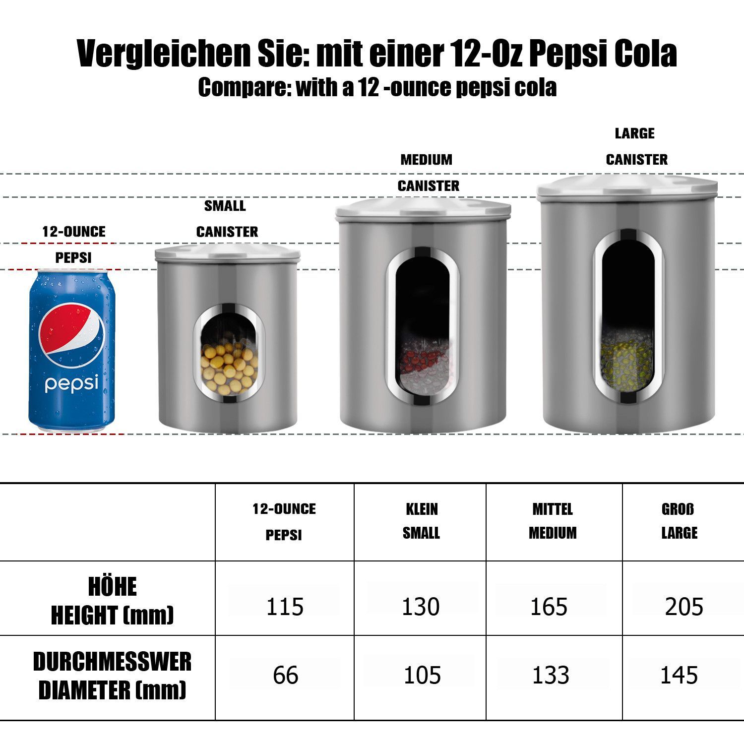 3 Set Edelstahl Vorratsdosen insg. 5,4L Küchenkanister mit Sichtfenster DeckeL