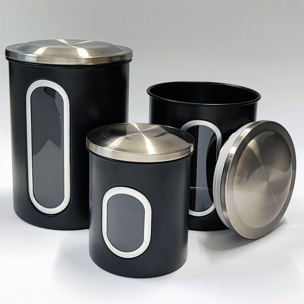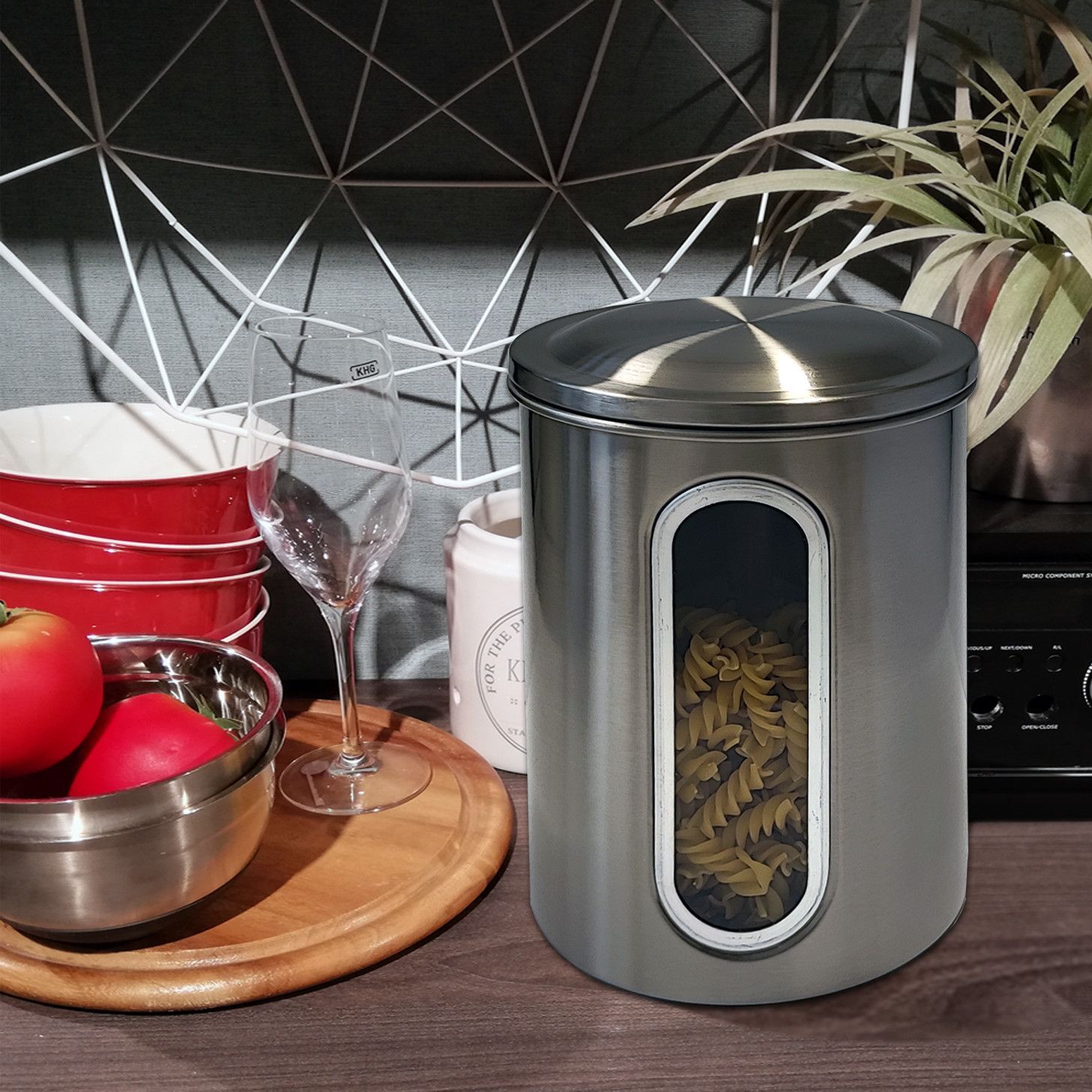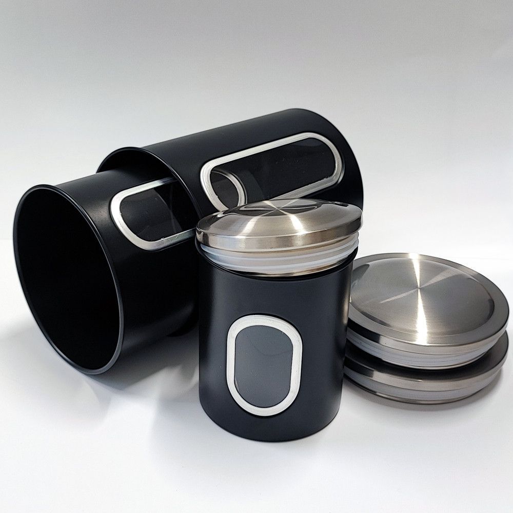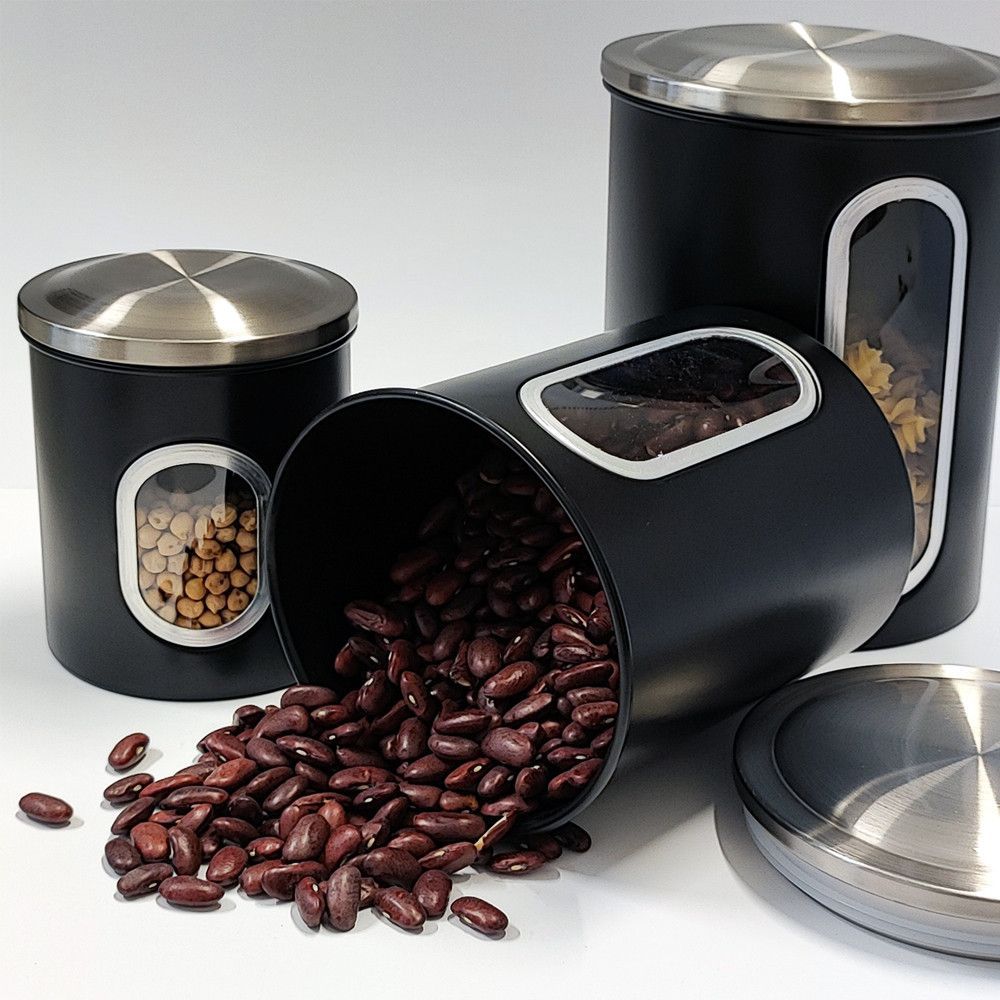 3 Set Edelstahl Vorratsdosen insg. 5,4L Küchenkanister mit Sichtfenster DeckeL