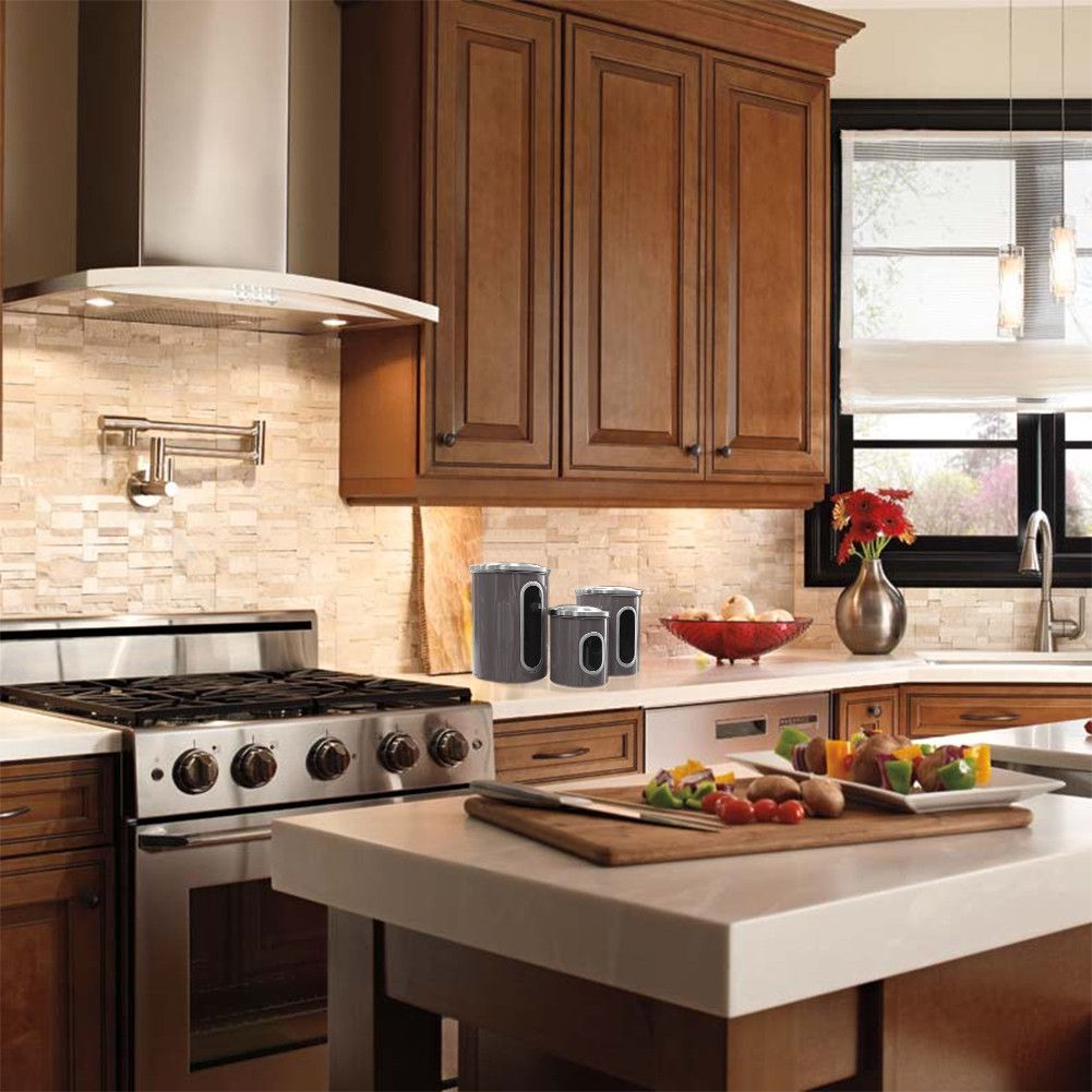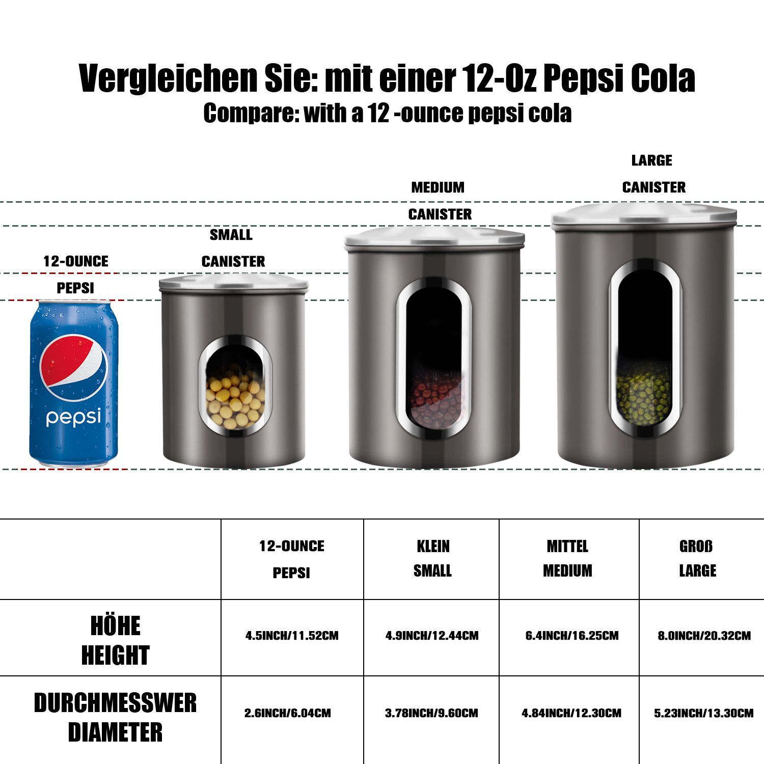 3 Set Vorratsdosen insg. 5,4L Küchenkanister Lebensmittel Aufbewahrungsbehälter: grau