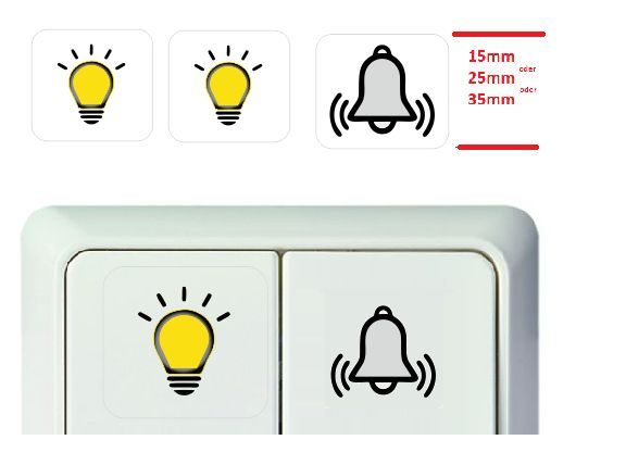 3 Stück Schalteraufkleber Glocke Licht Schalter Aufkleber Symbol Klingel (R25/2)