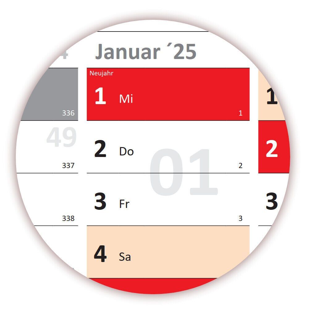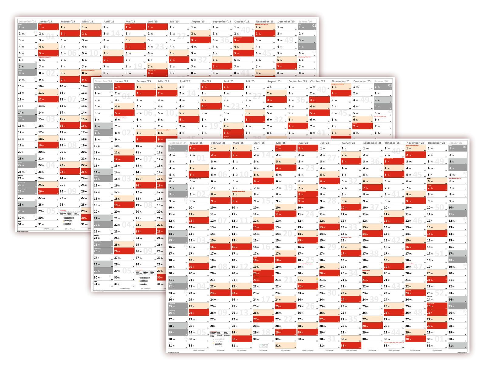 3 Stück XXL Wandkalender gerollt Wandplaner DIN A0 2025 rot2 große Tageskästchen