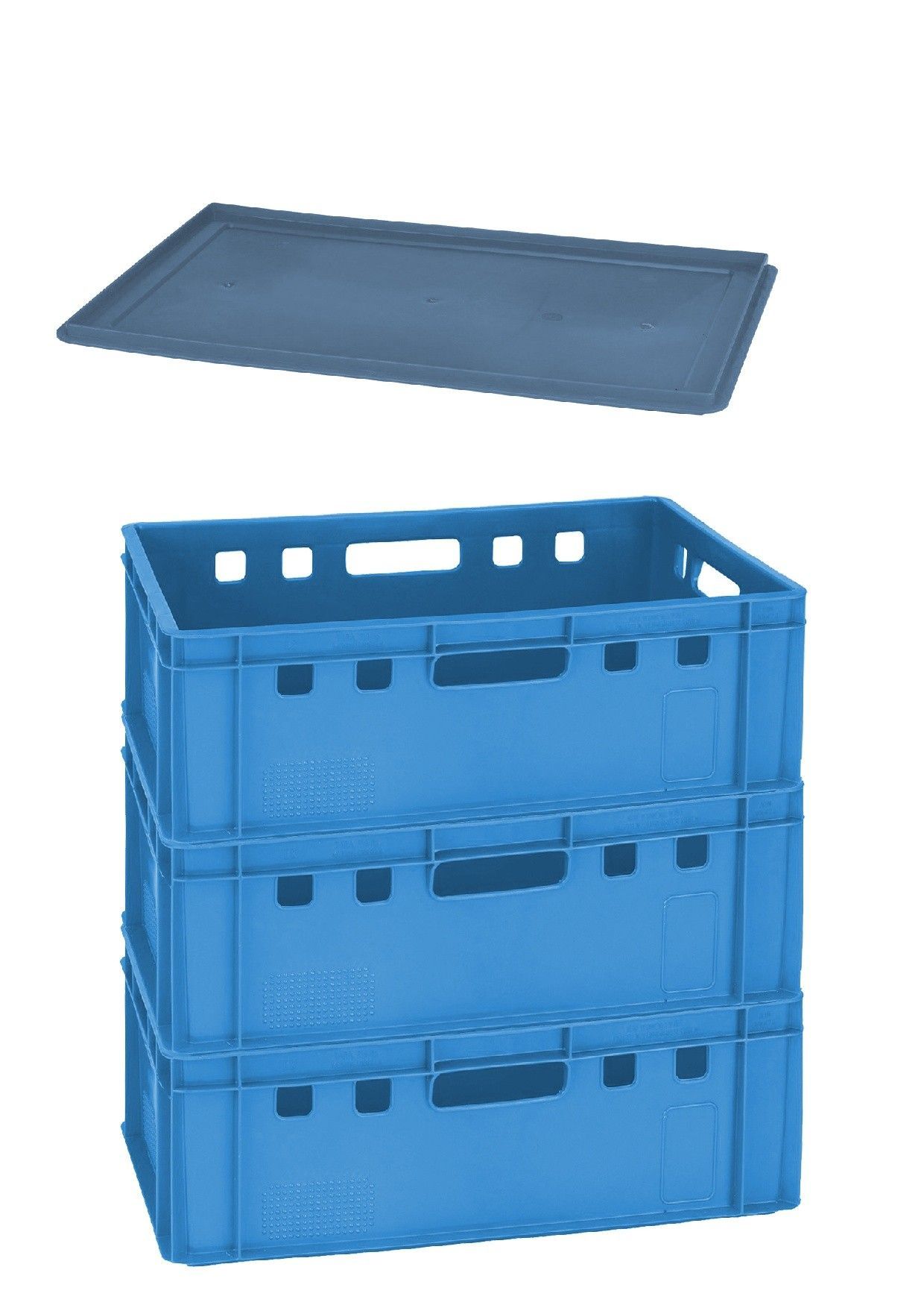 3 stabile Transportkisten Kiste 60x40x20 cm + Deckel blau Gastlando