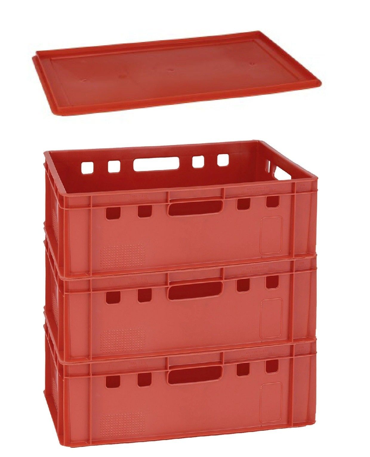 3 Stapelkisten Kiste Lagerkiste Box rot E 2 60x40x20 cm + 1 Deckel NEU Gastlando