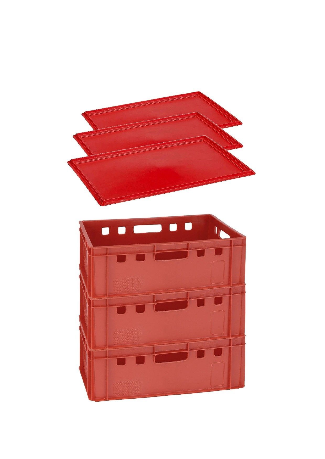 3 Stapelkisten Kiste Lagerkiste Box rot E 2 60x40x20 cm + 3 Deckel NEU Gastlando