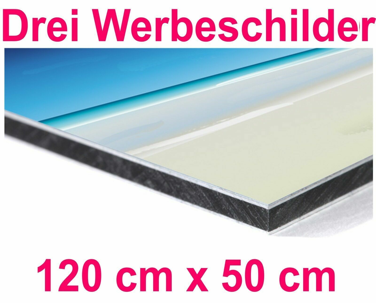 Ihr Firmenschild von uns schaut immer gut aus! Drei Werbeschilder im hochauflösendem brillianten Premiumdruck. je 120 cm x 50 cm Mit verschieden Motiven preisgleich möglich. Lieferung Kostenlos + Beratung kostenlos! BESCHRIFTEN, DRUCKEN, LIEFERN! ALLES IM PREIS ENTHALTEN! Ihre unverwüstlichen Reklam