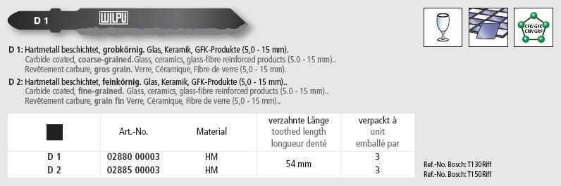 3 Stichsägeblätter Wilpu D1 HM beschichtet grob verzahnte Länge 54mm T130Riff