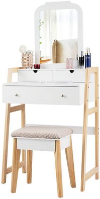 Costway Schminktisch mit gepolstertem hocker, frisiertisch set mit kiefernbeinen