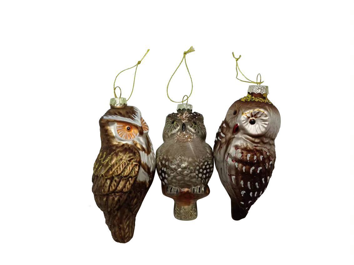 3 Stück Eulen zum Hängen 11-13cm Glas Weihnachtshänger Geschenkanhänger Dekoanhänger