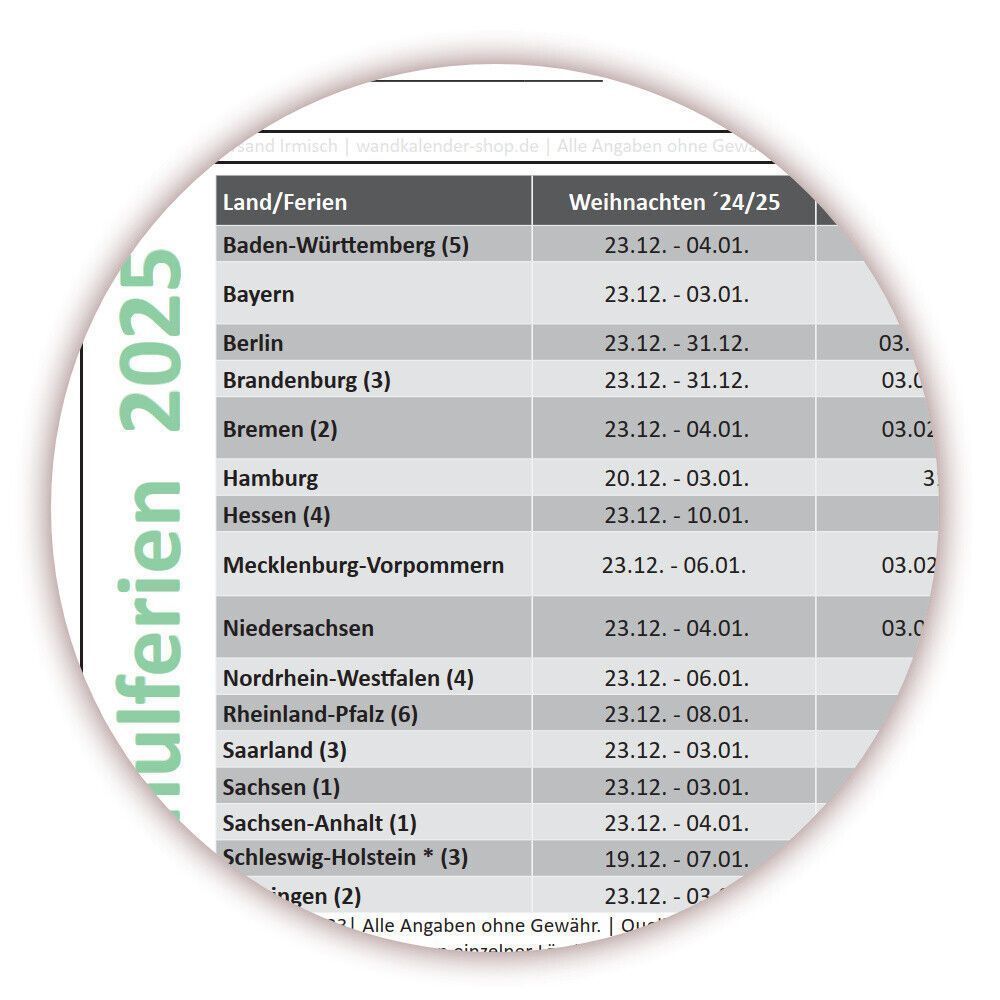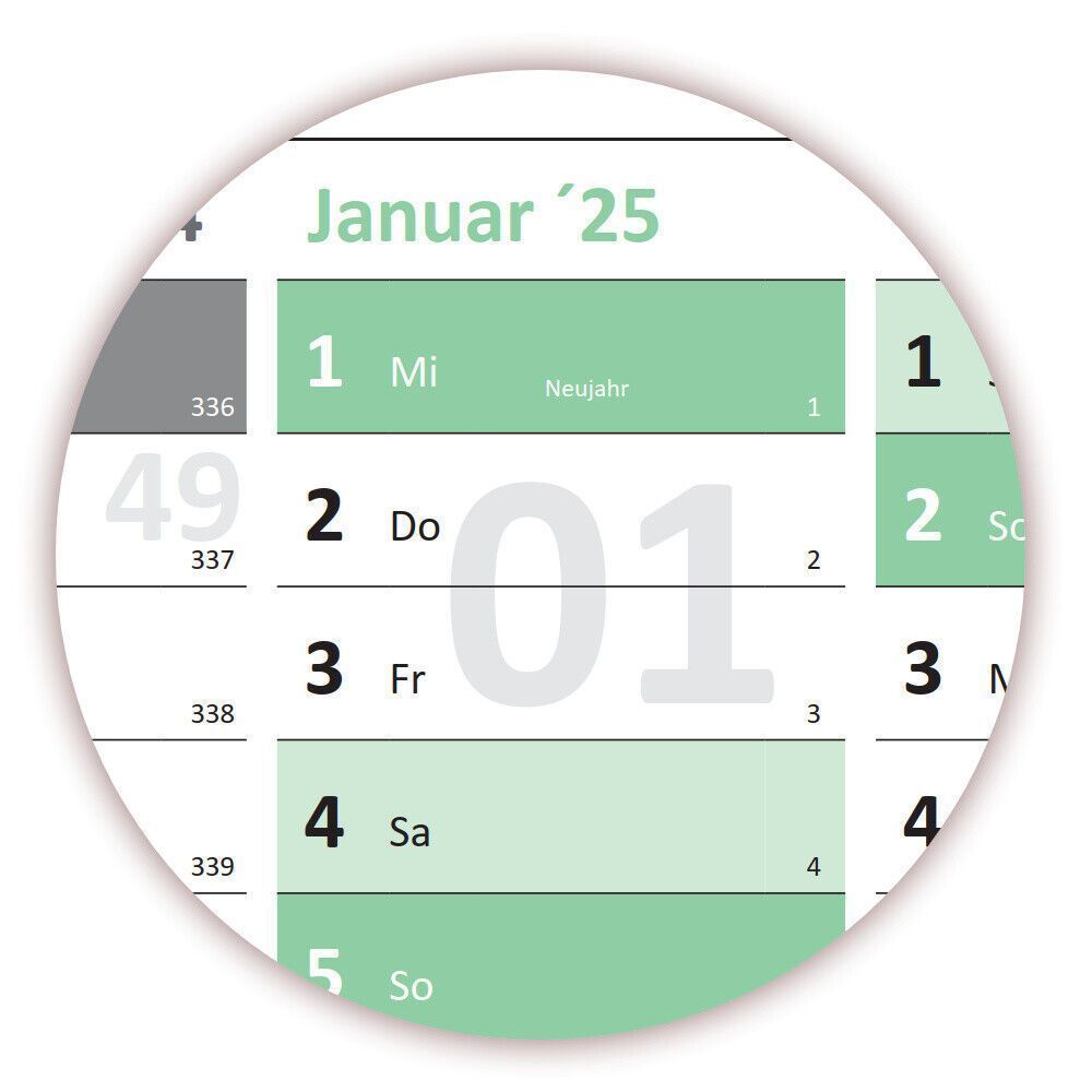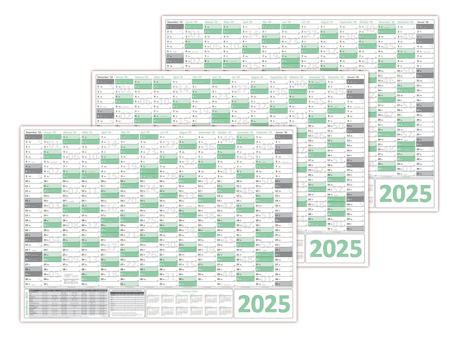 3 Stück Green Wandkalender DIN A1 2025 gerollt Wandplaner inkl. Ferien Feiertage