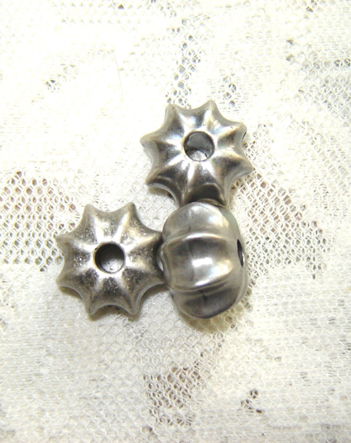 3 Stück große Perle Stern Metalloptik mit Ornament 1,3cm lang 2cm Durchmesser