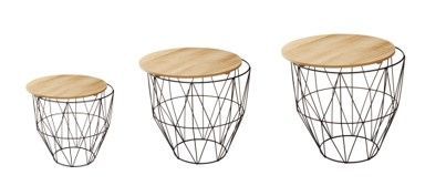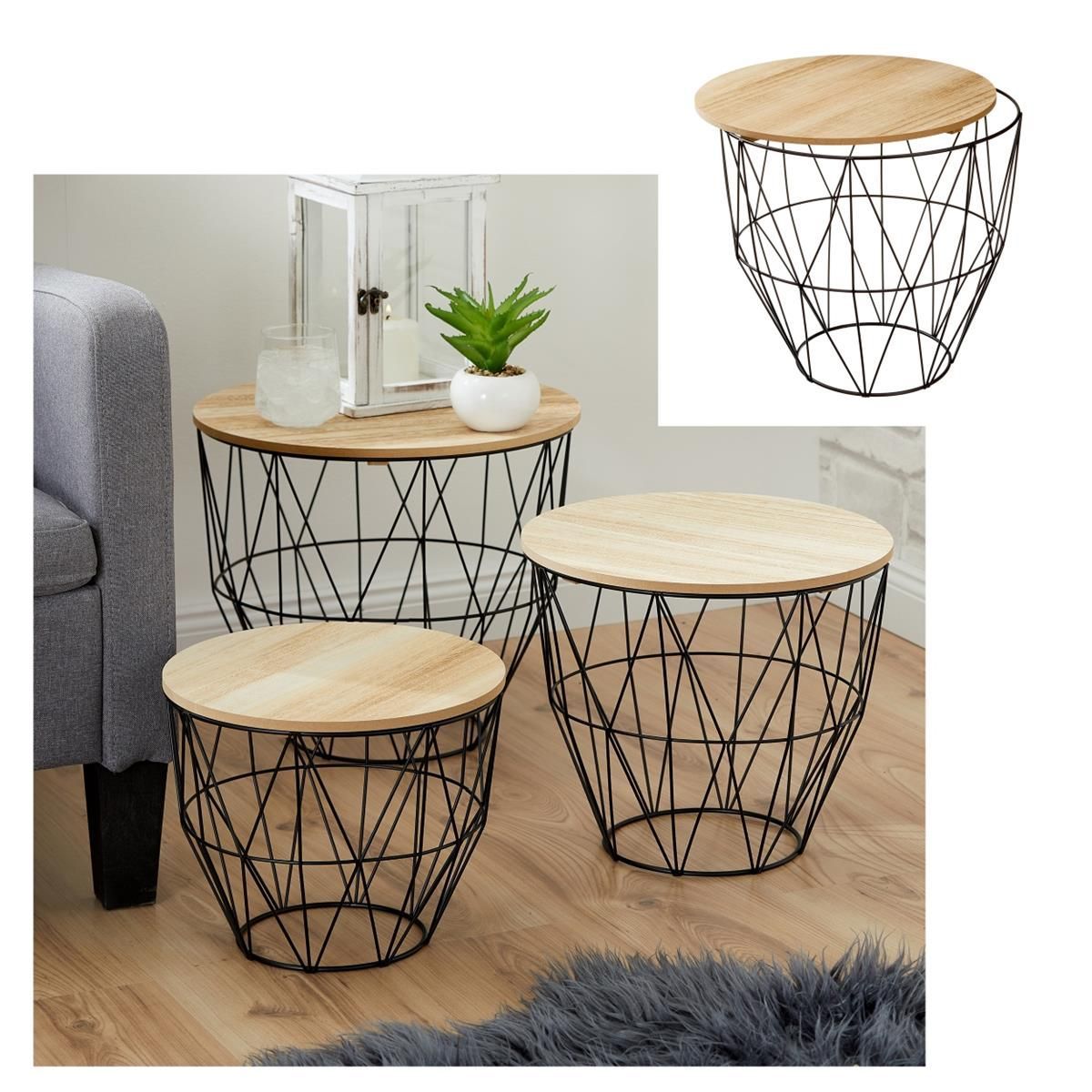 3 Stück Korbtisch Kaffeetisch Beistelltisch Metallkorb Sofatisch Wohnzimmertisch