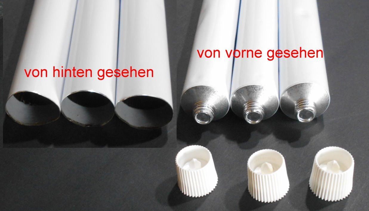 3 Stück Leertuben aus Aluminium weiß lackiert, Volumen 95 ml, Masse : 30 x 185 mm