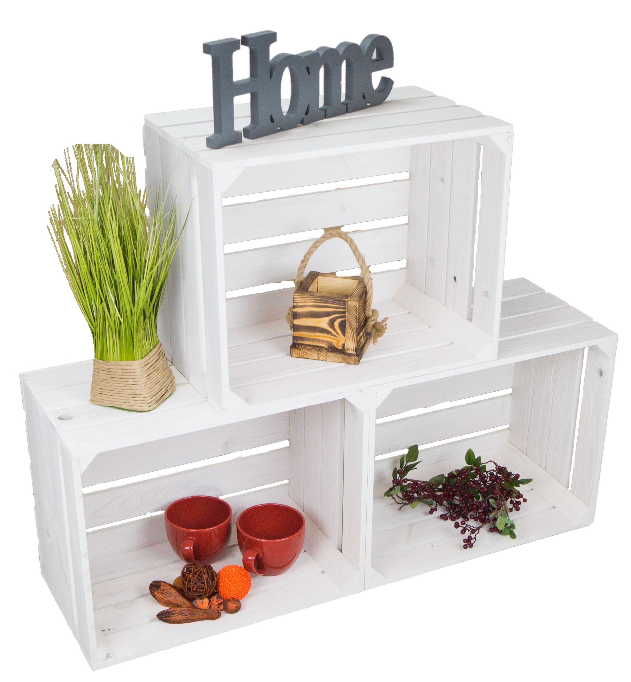 3 Stück Obstkisten "Johanna" neu - weiß lasiert
