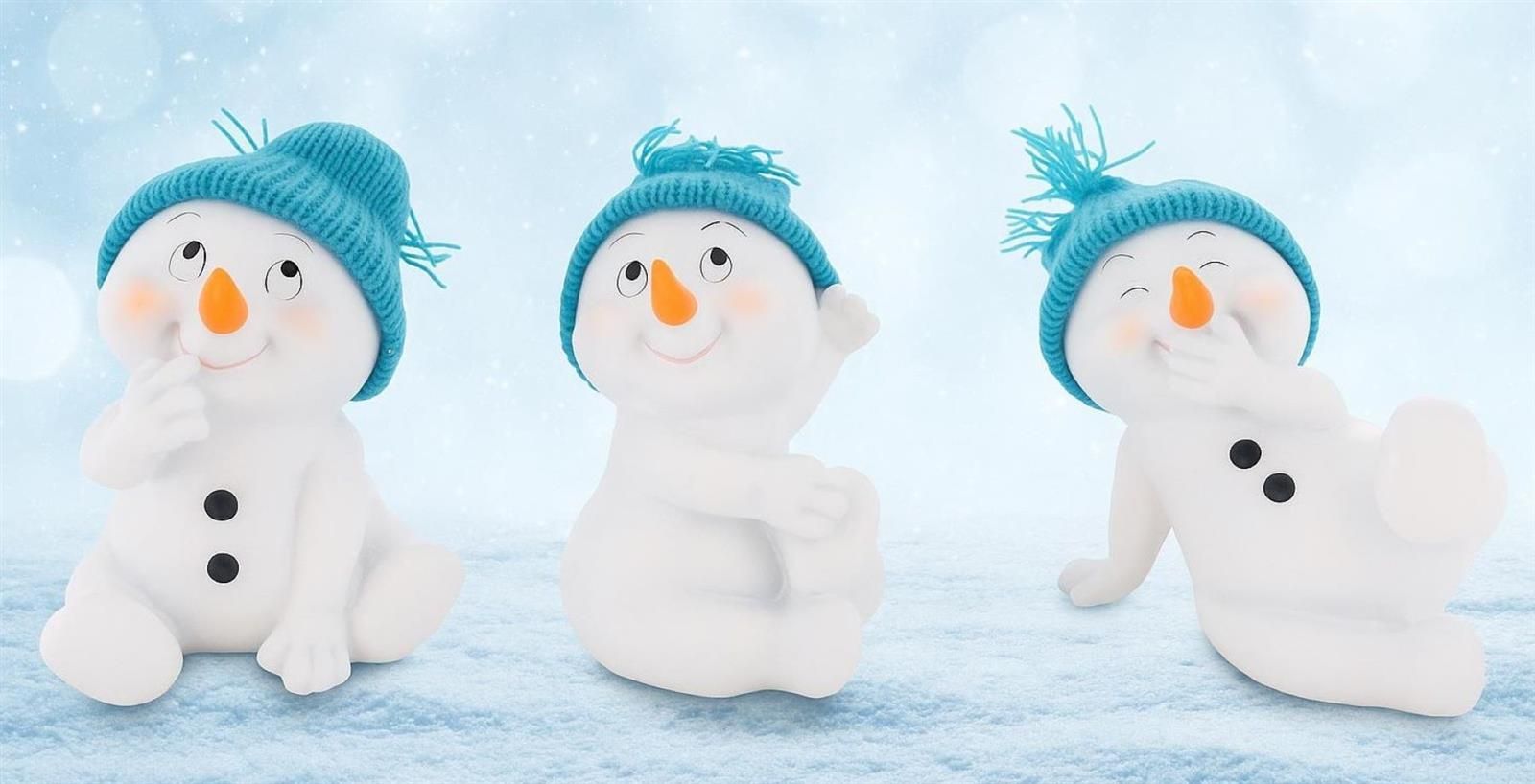3 Stück Schneemann Figuren türkis sitzend 11,5cm Weihnachten Dekofiguren Winter
