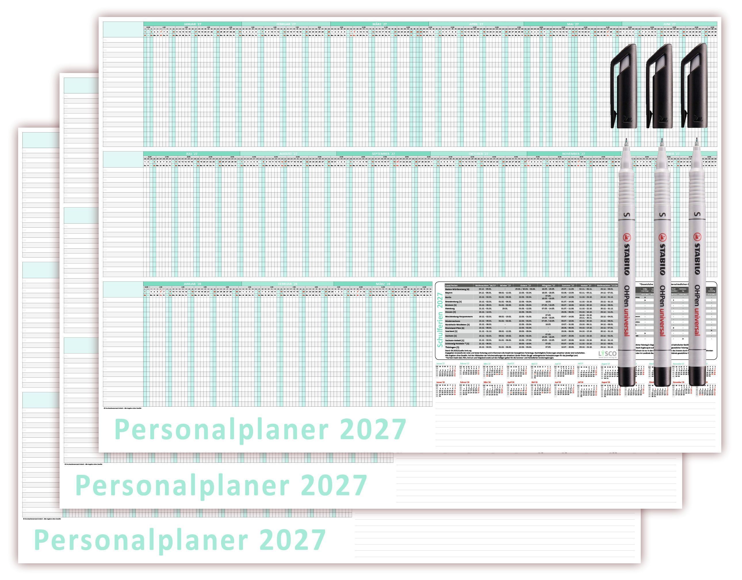 3 Stück Urlaubsplaner/Personalplaner DIN B1 2027 nass abwischbar + Folienstifte