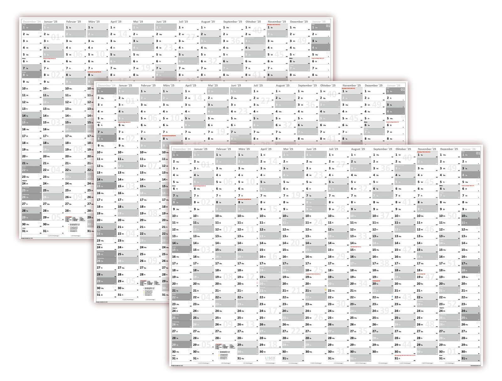 3 Stück XL Wandkalender gerollt Wandplaner DIN A1 2025 grau2 große Tageskästchen