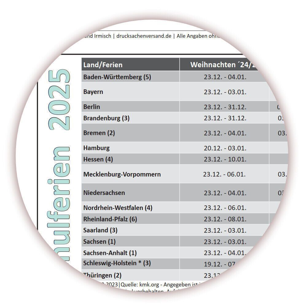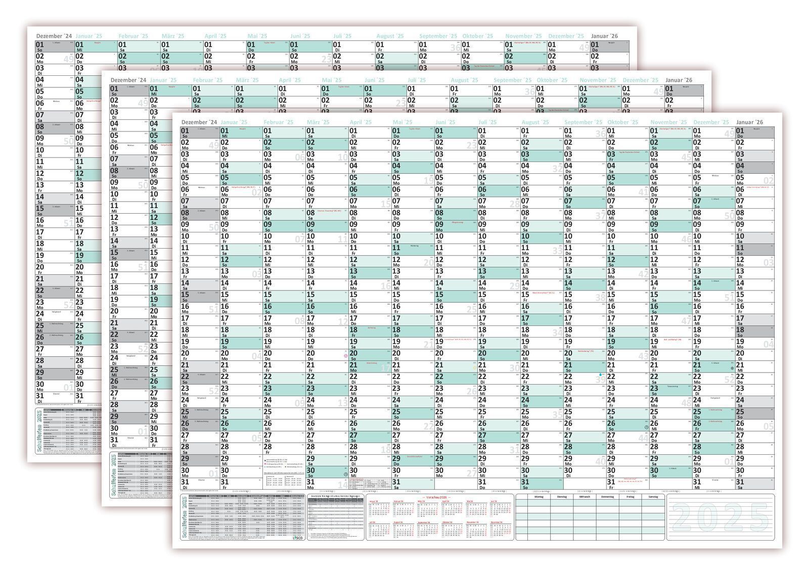 3 Stück XXXL Wandkalender 2025 im DIN B0 Format (1,4 x 1,0 m) Ferien Feiertage