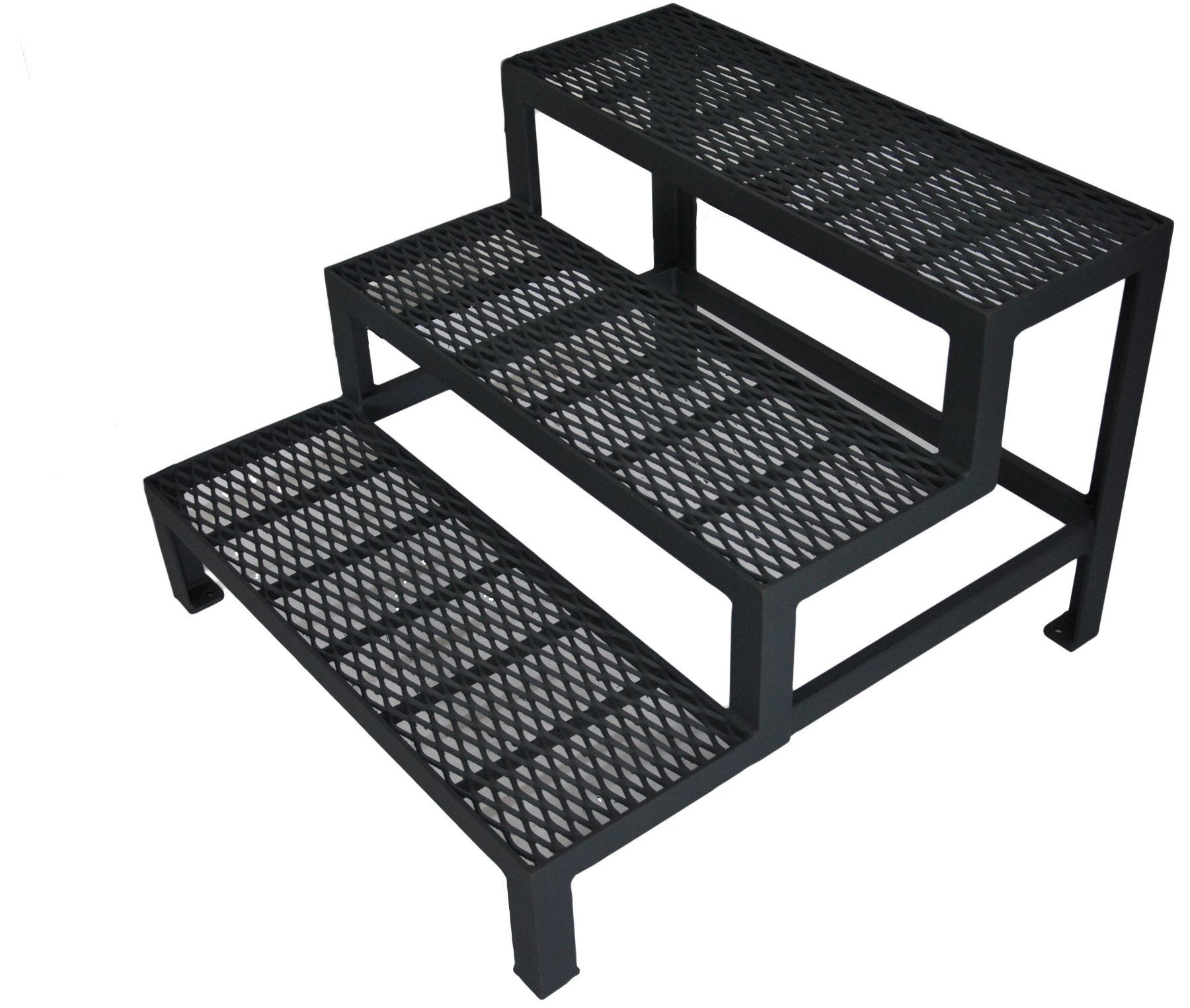 3 Stufen Stahltreppe mit Geländer Breite 80-100 cm Höhe 45-63 cm verzinkt Anthrazit