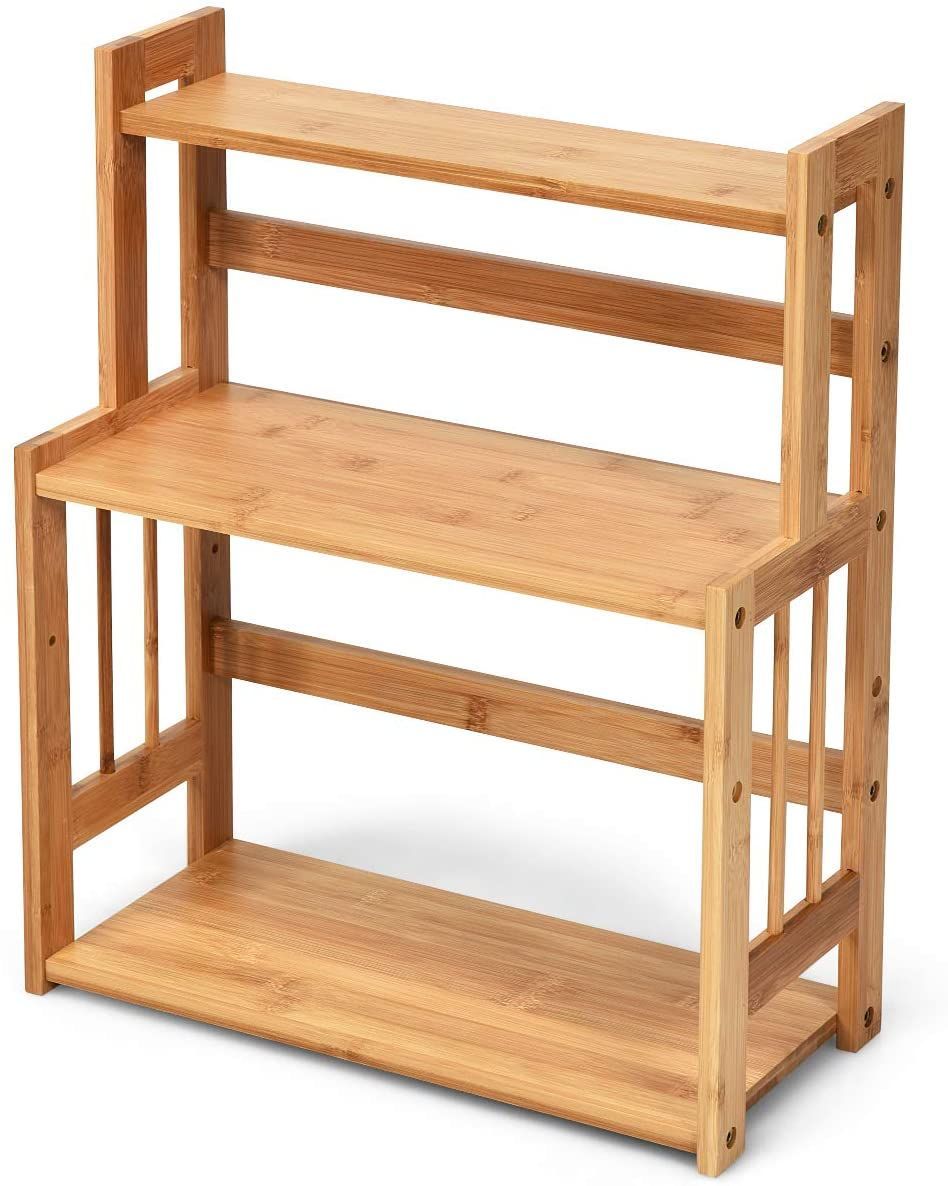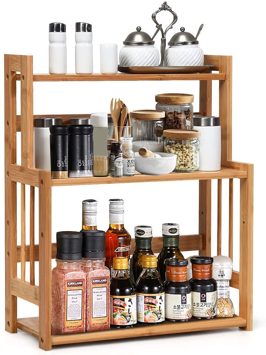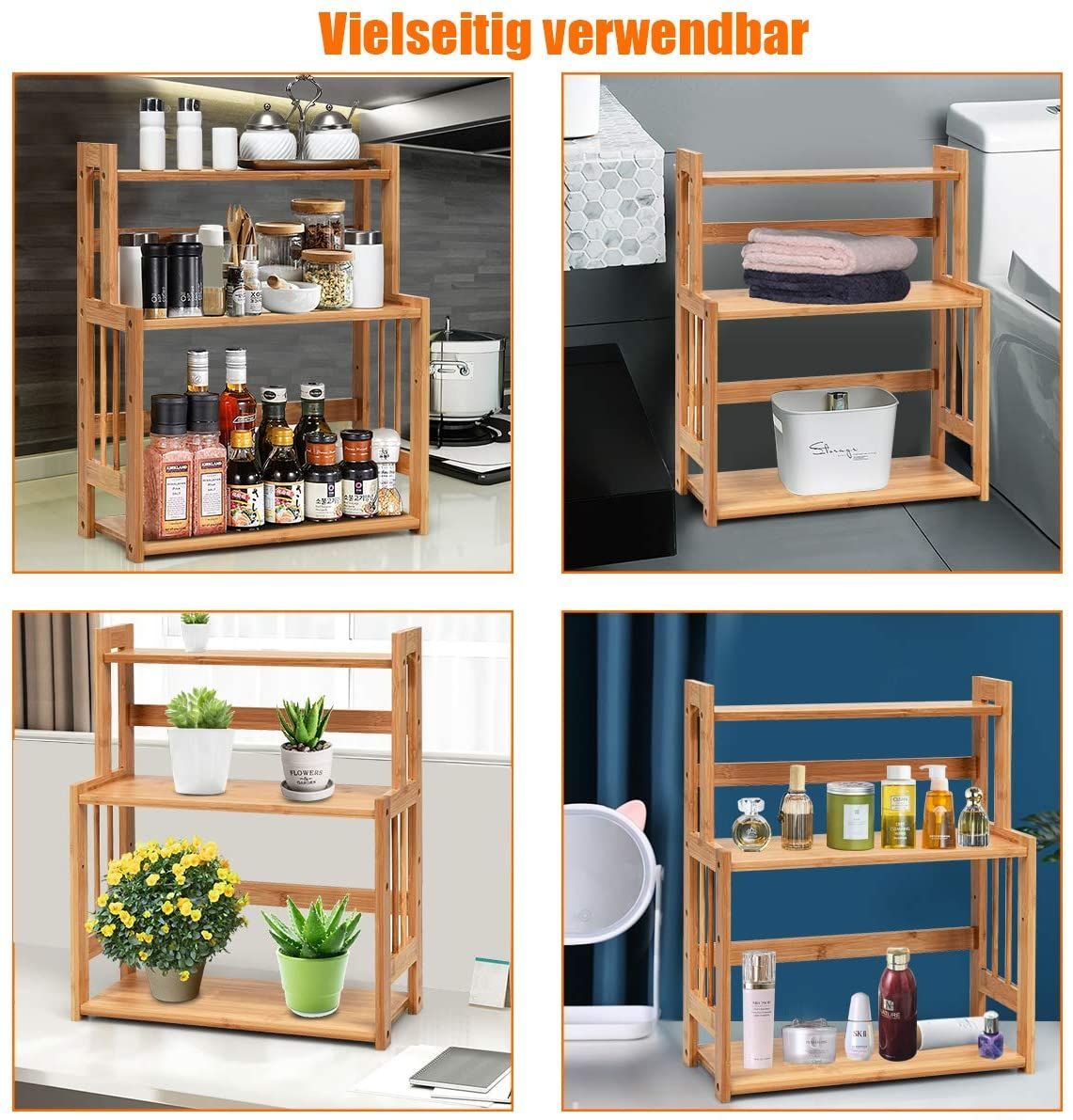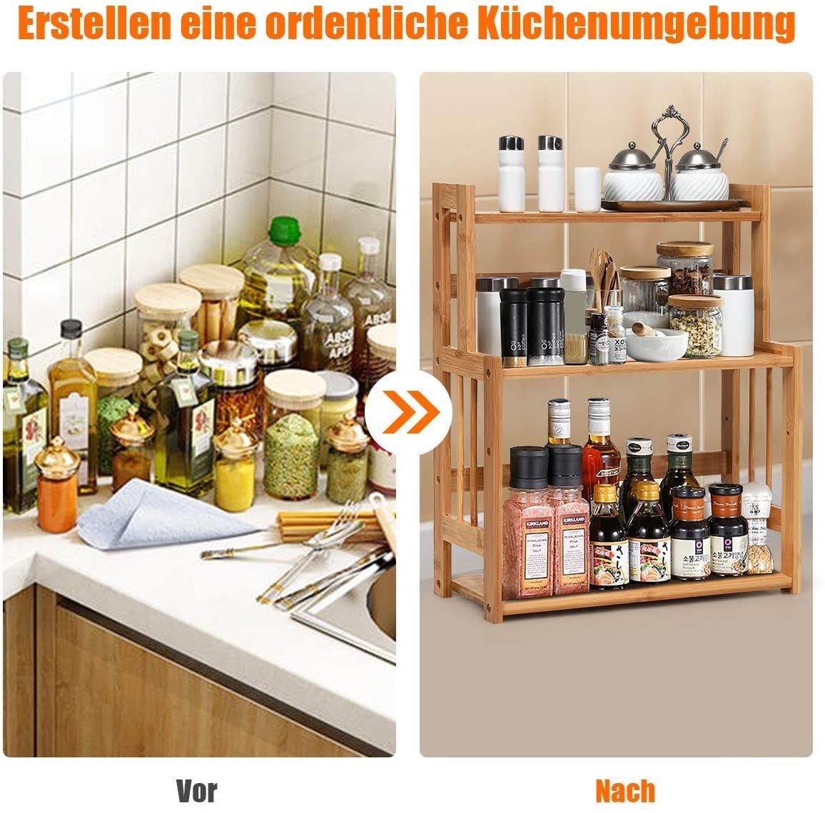 3-stufiges Gewürzregal mit Einer höhenverstellbarer Ablage Küchen Eckregal aus Bambus