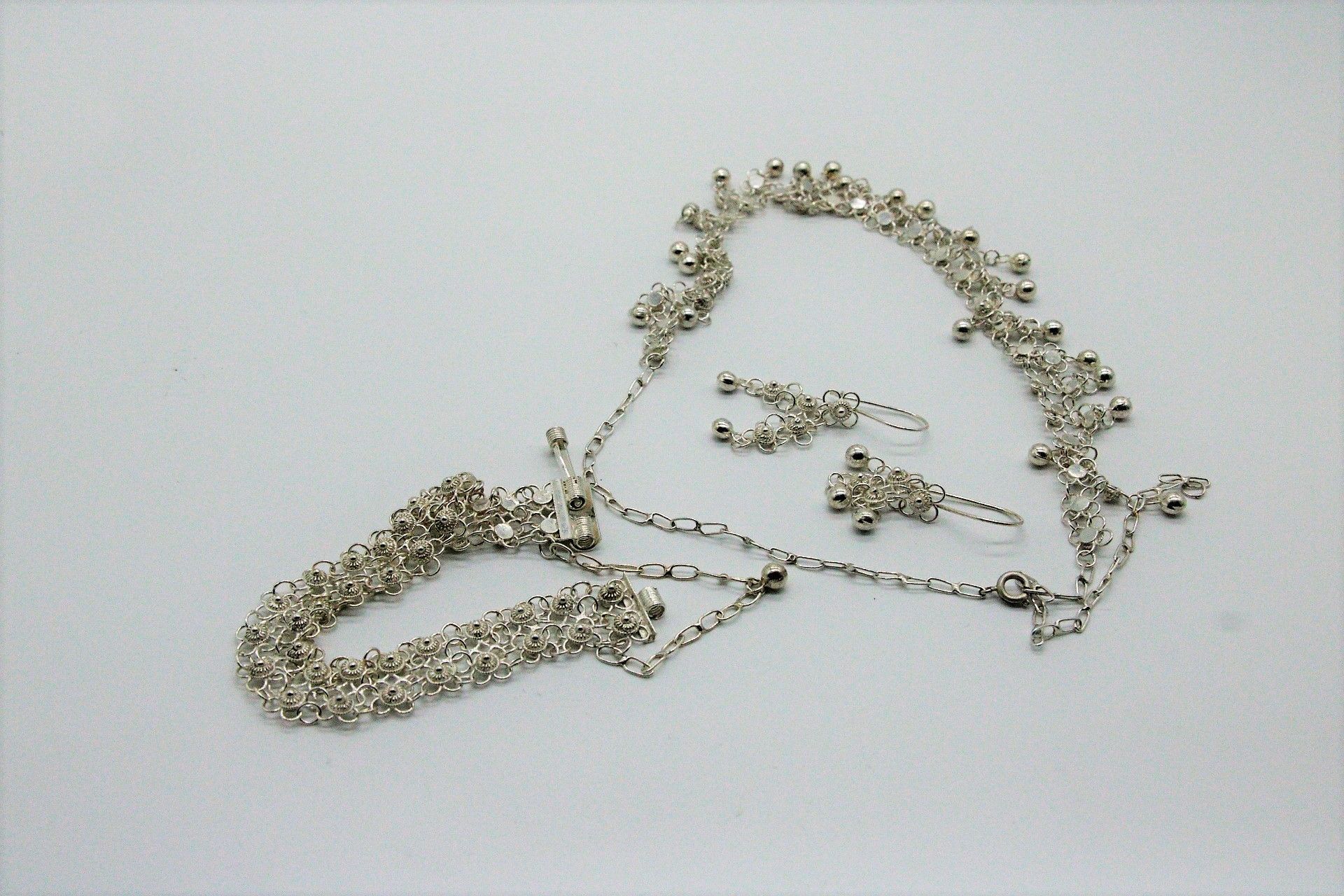 3-teilige Set (Collier, Armband, Ohrringe) aus 925er Silber