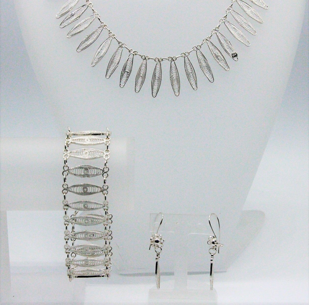 3-teilige Set (Collier, Armband, Ohrringe) aus 950er Silber