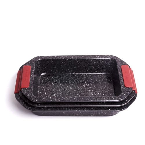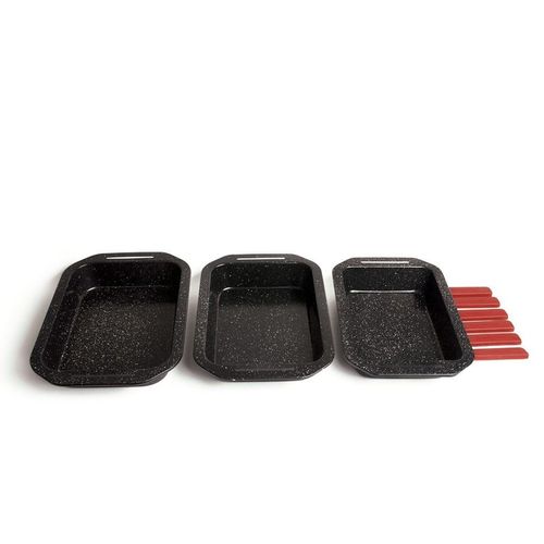 3-teiliges Bräter-Set - Karbonstahl mit Marmor-Antihaftbeschichtung - Abnehmbaregriff
