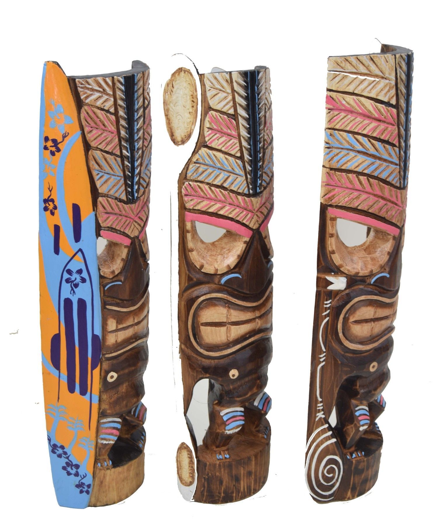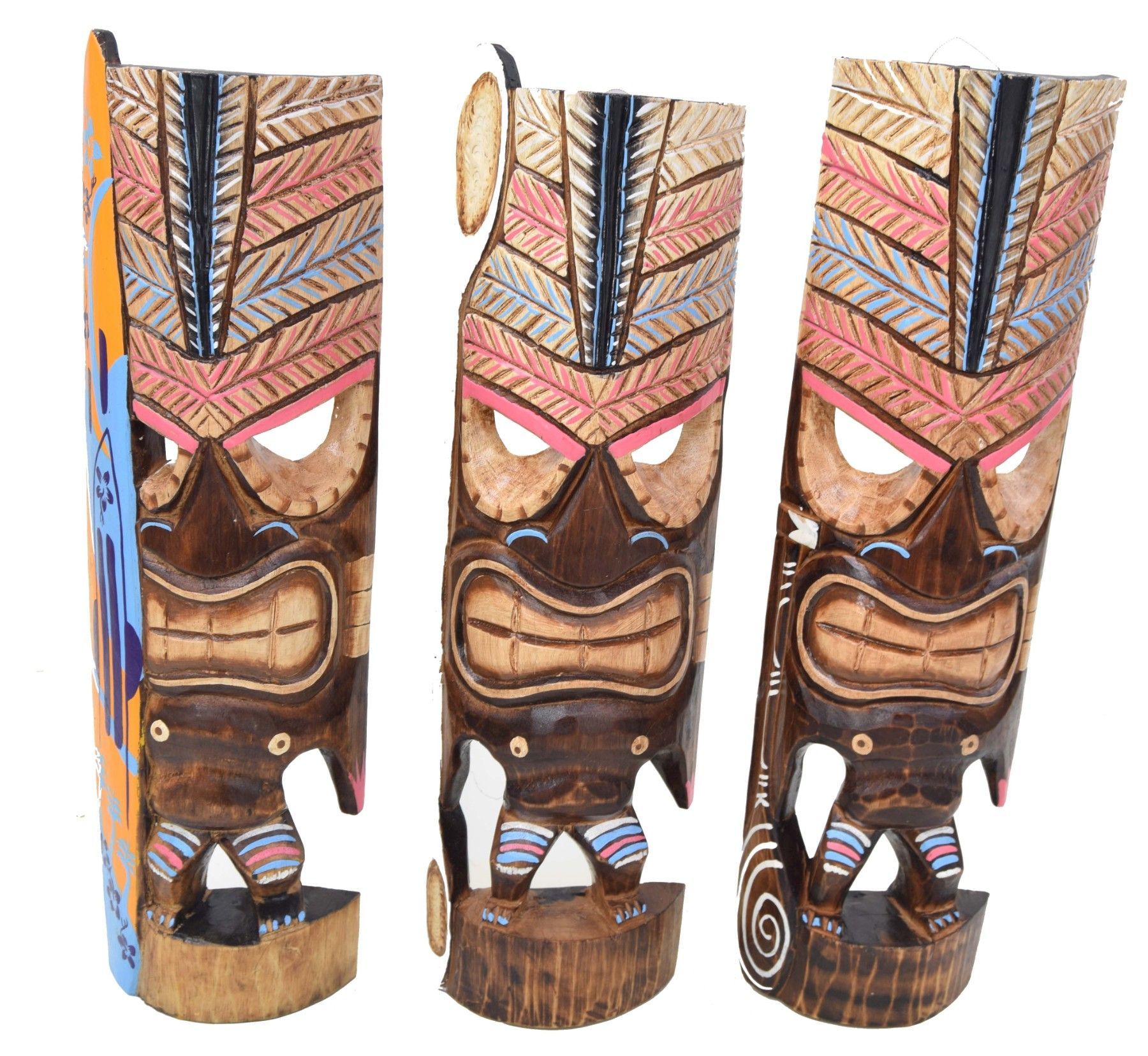 3 Tiki Figuren aus Holz 30cm Hawaii Maui Design zum Stellen und Aufhängen