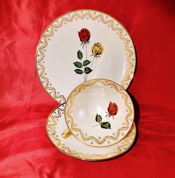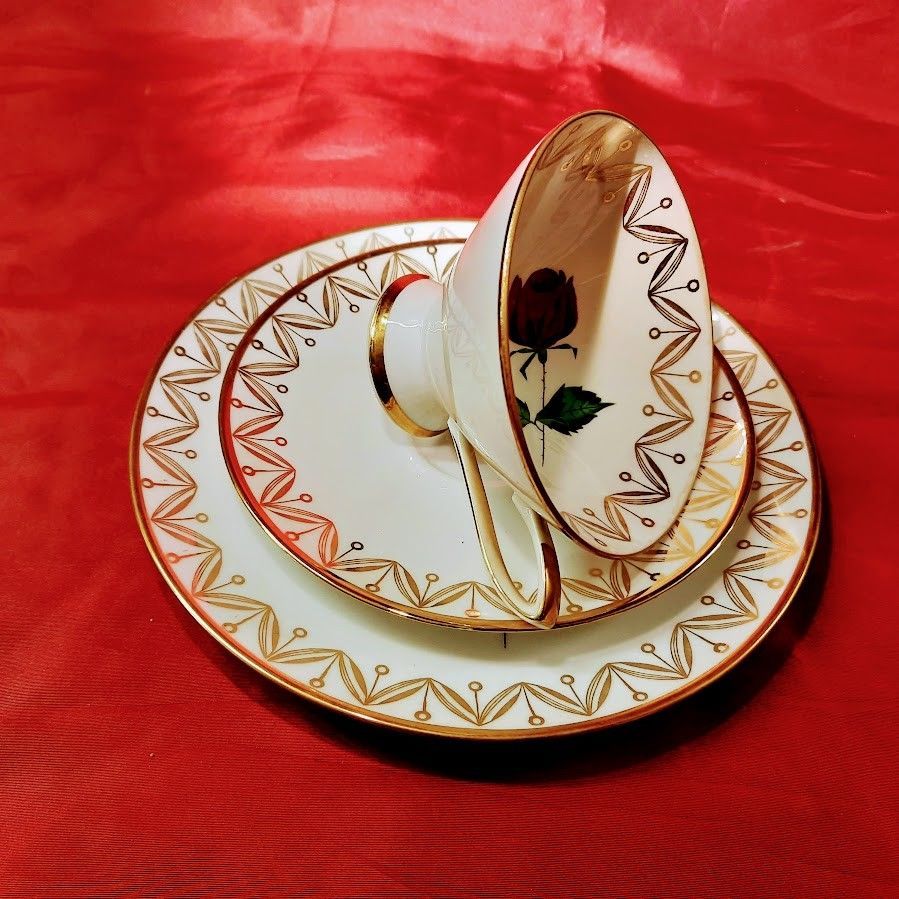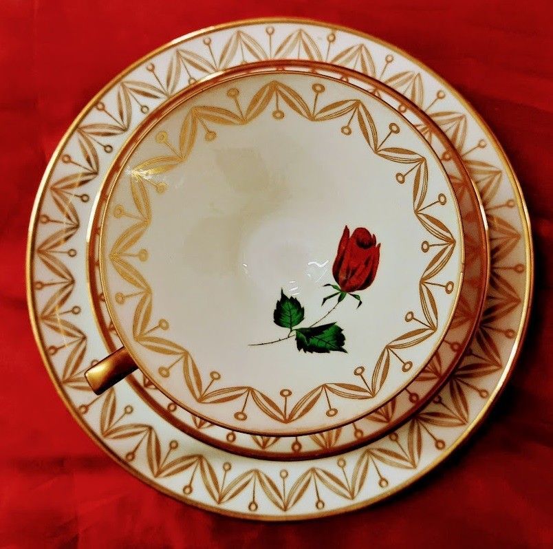 3 tlg Antik Sammeltasse Porzellan Bavaria Winterling Röslau Gold Malerei mit Sockel
