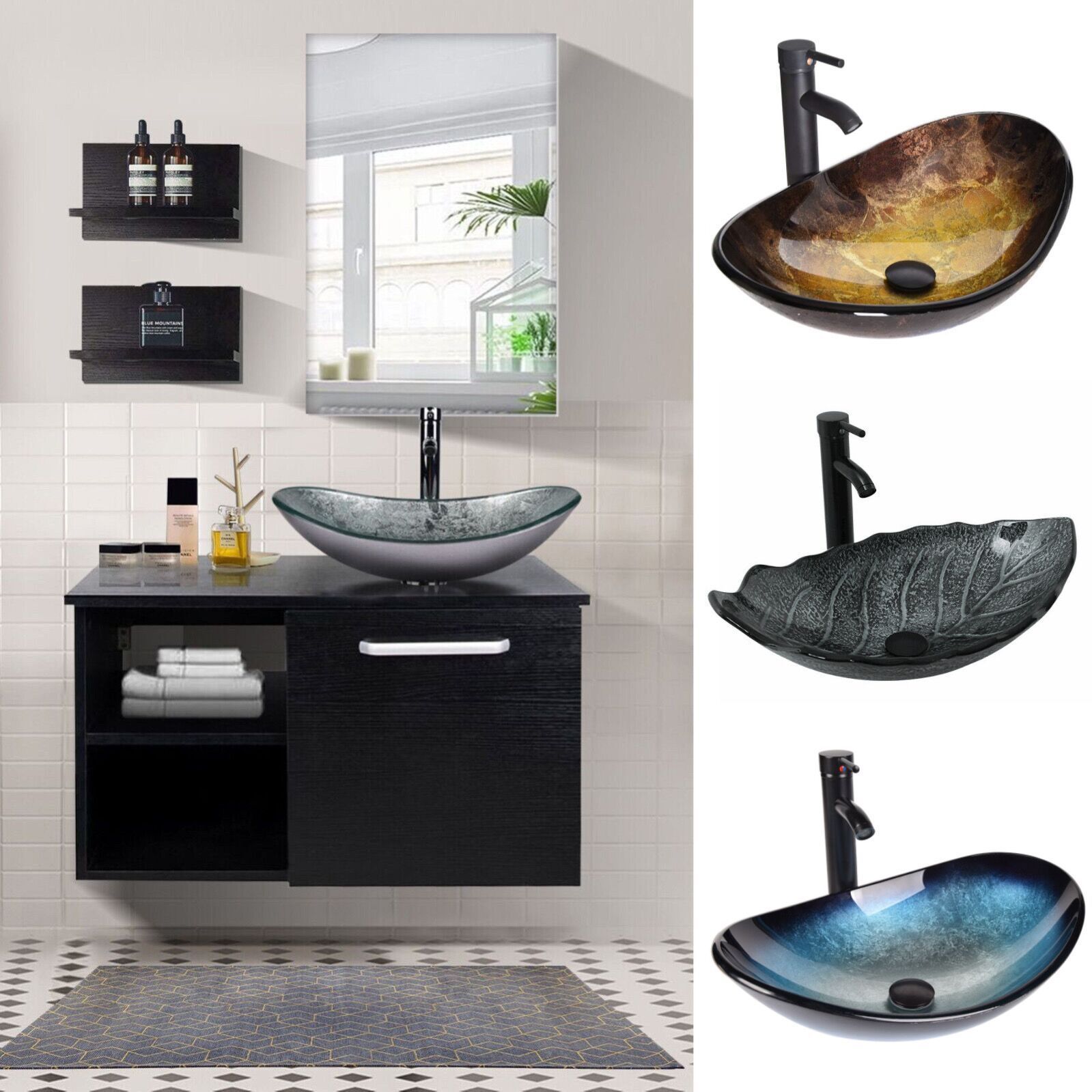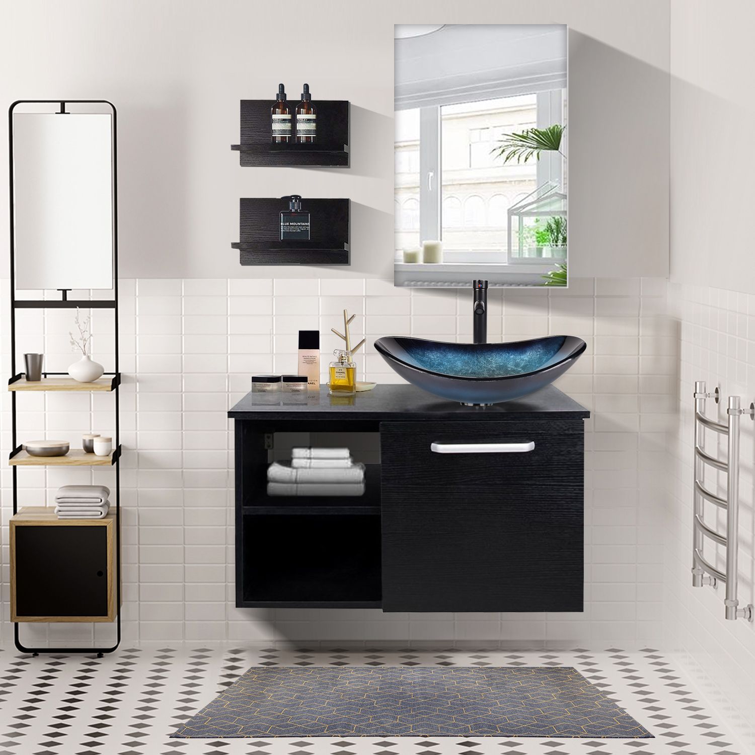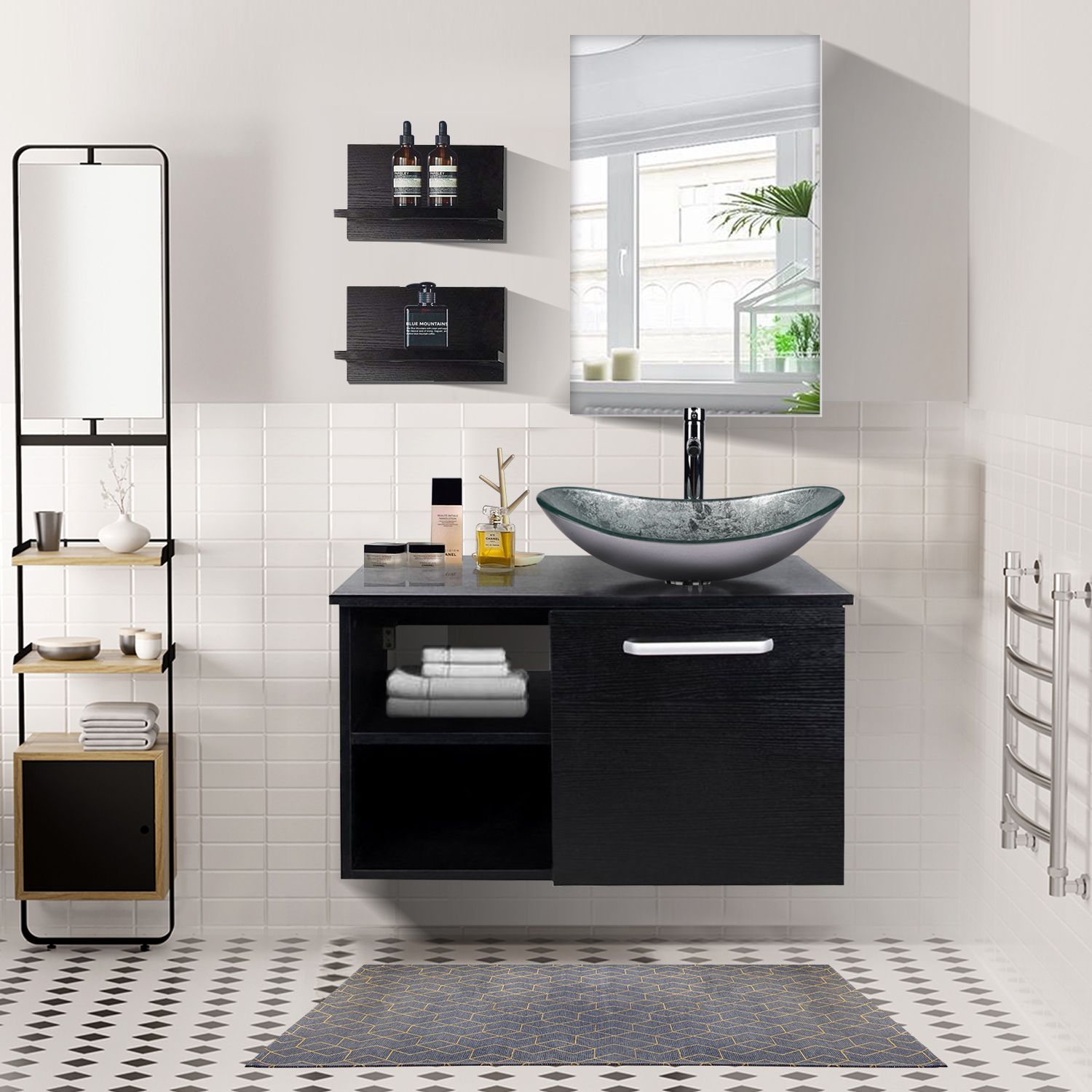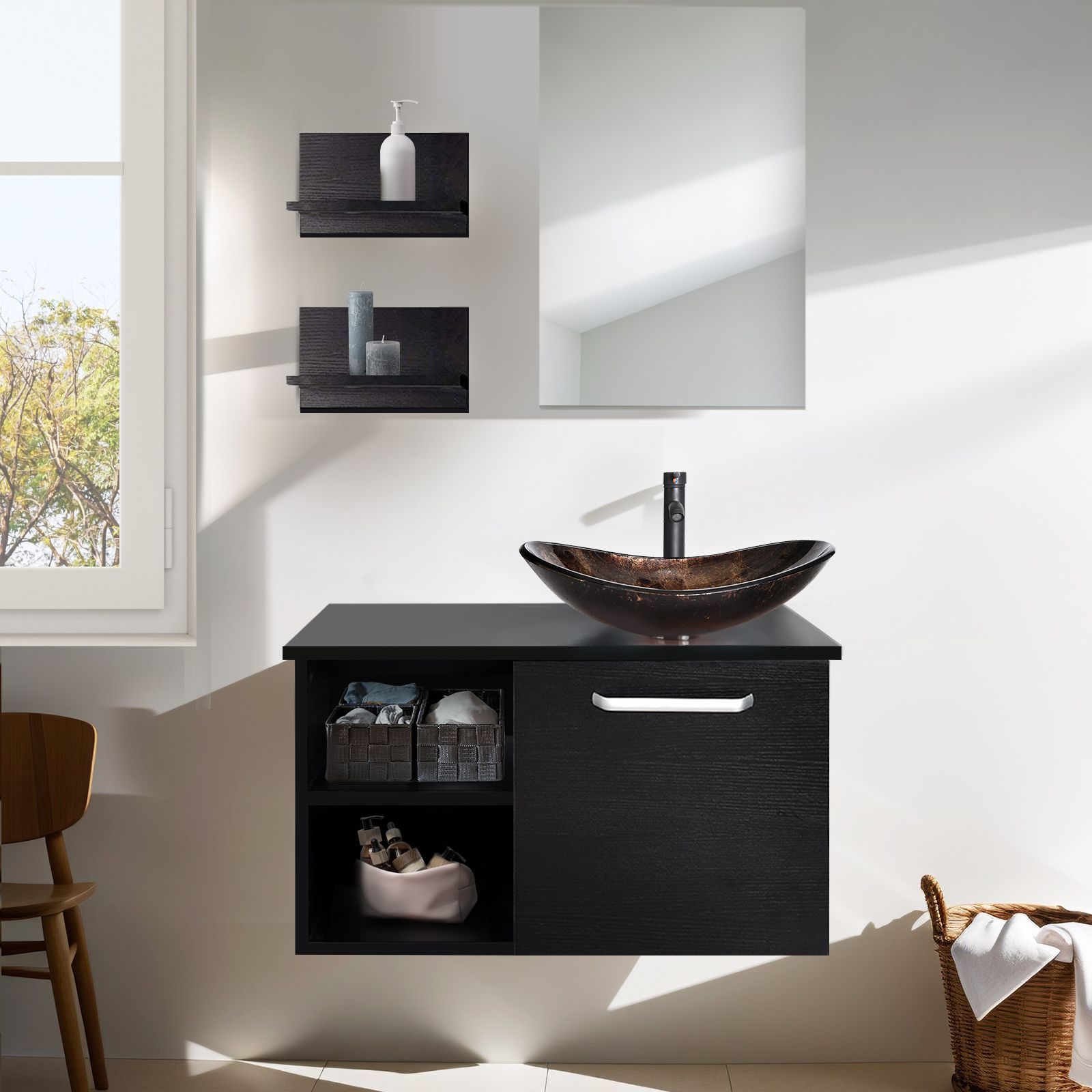 3 Tlg Badmöbel set 70cm Unterschrank Glas Waschbecken Spiegel Badezimmermöbel